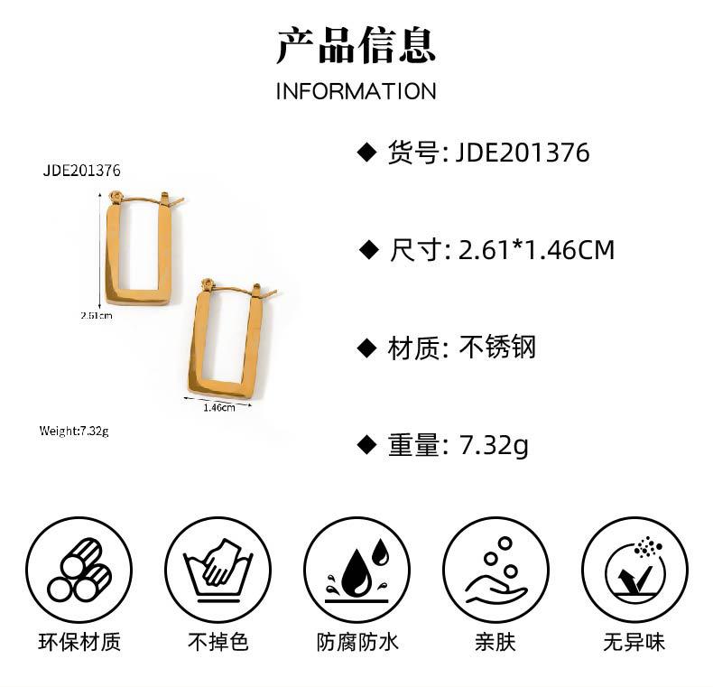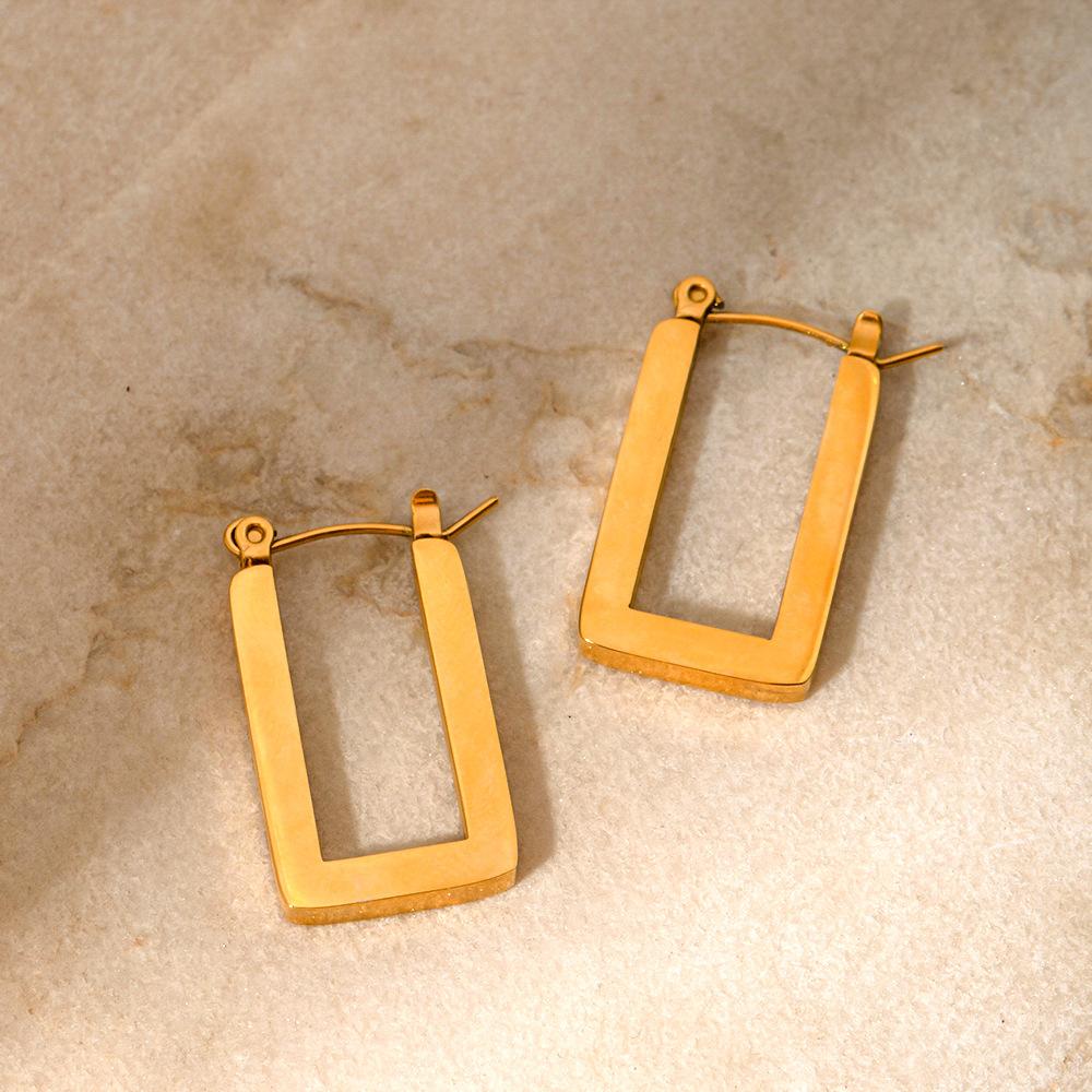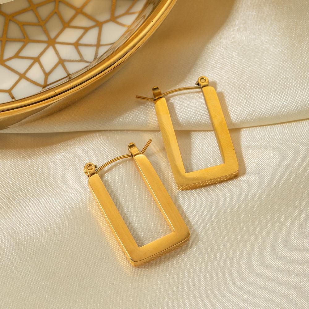 Aretes de Aro Geométricos Cuadrados Grandes de Acero de Titanio Ins para Mujer Chapado en Oro de 18K Acero Inoxidable 316L Aro Tendencia Ins