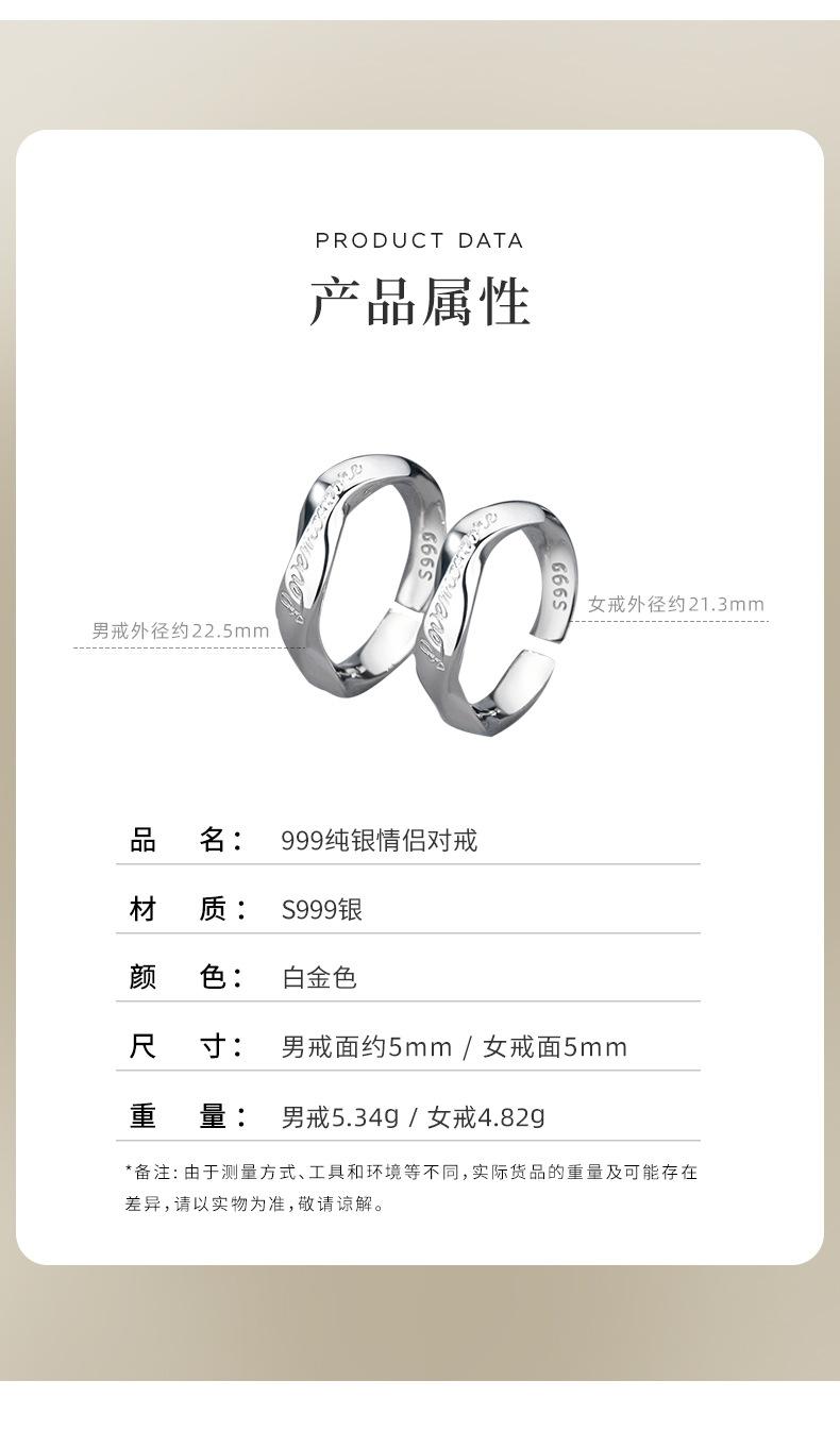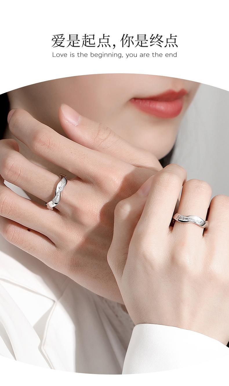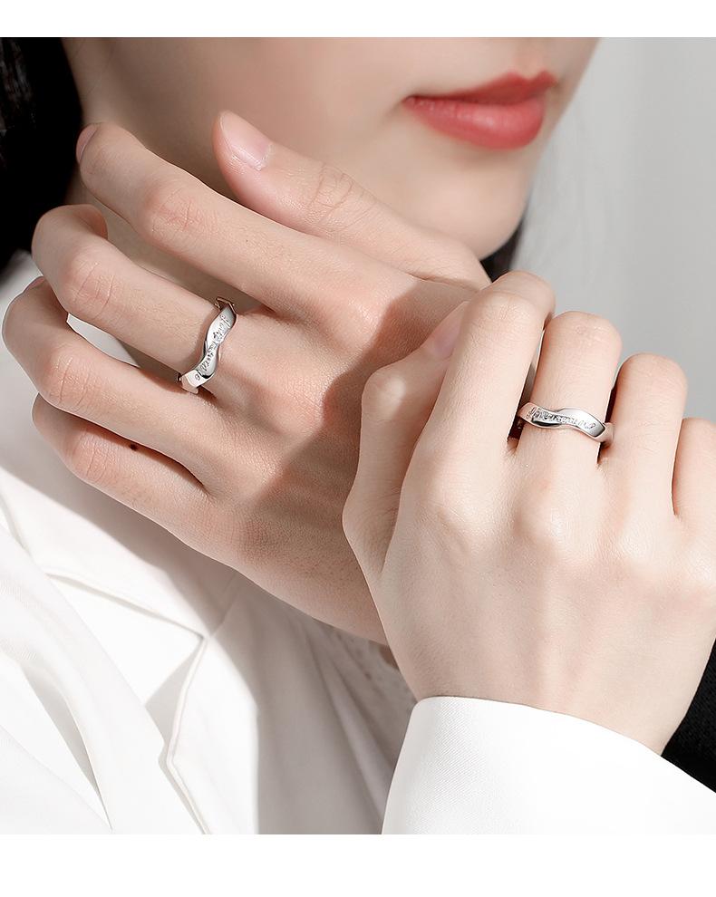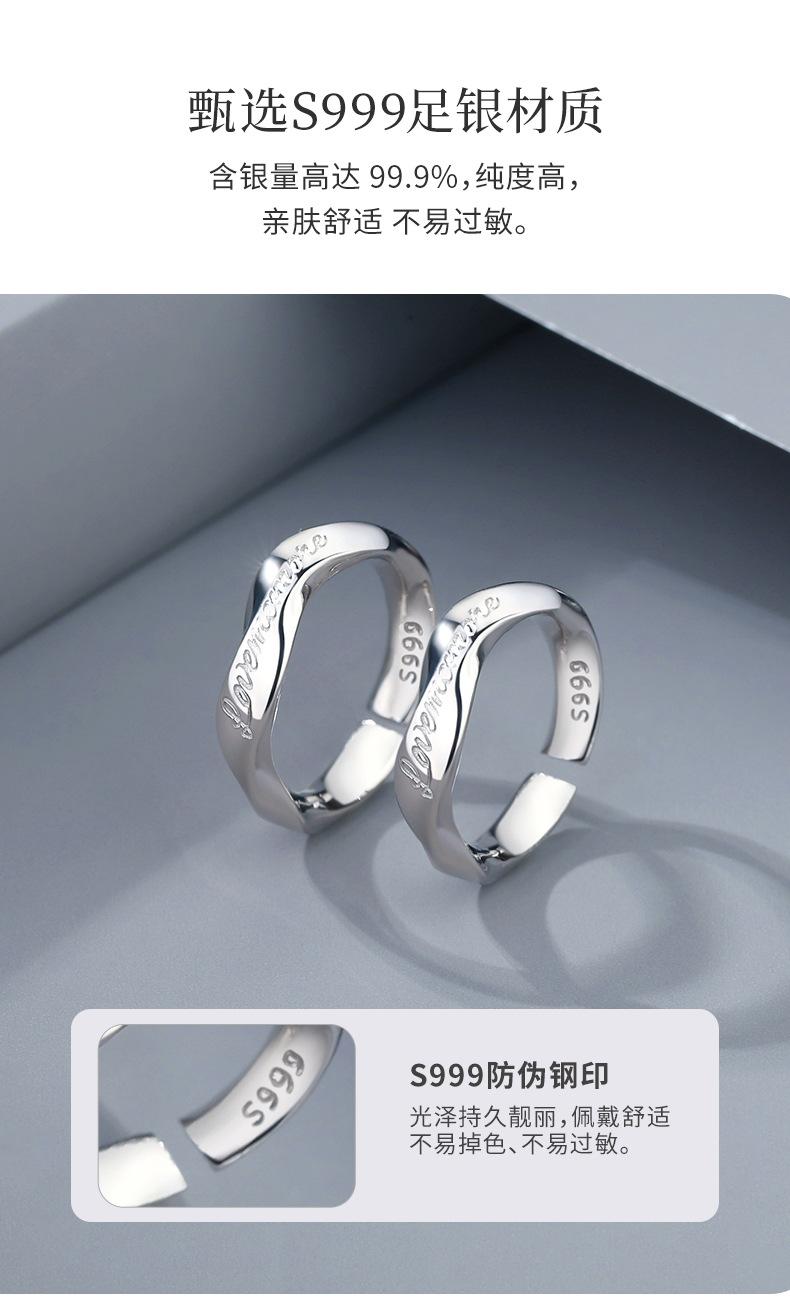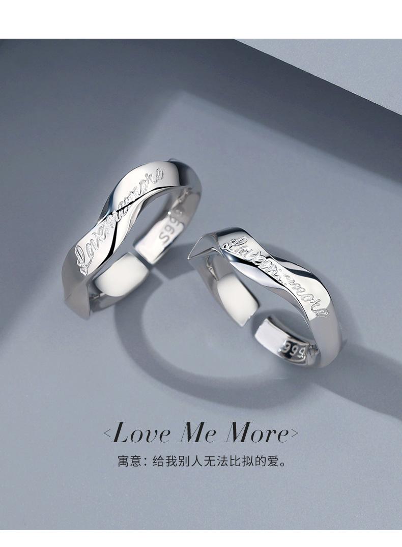 Tichiya Toma Real Lujo Accesible Regalo de San Valentín Anillo de Pareja de Plata Esterlina 999 Ámame Más Par de Anillos Simple y Moderno