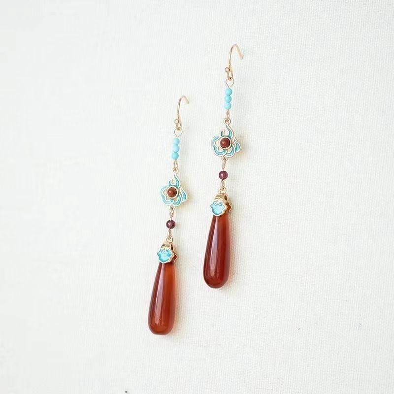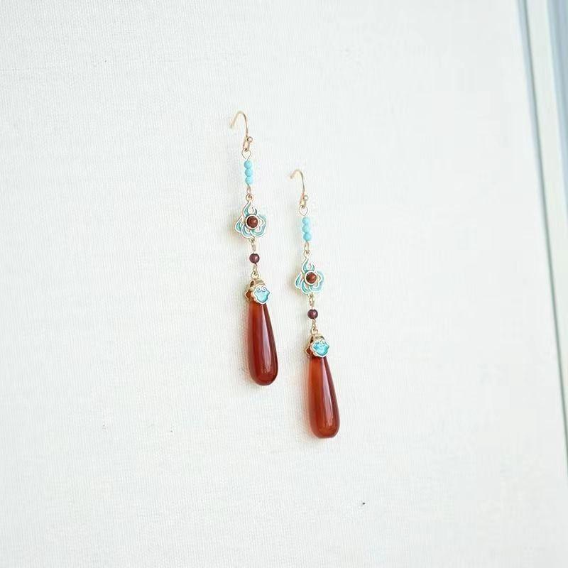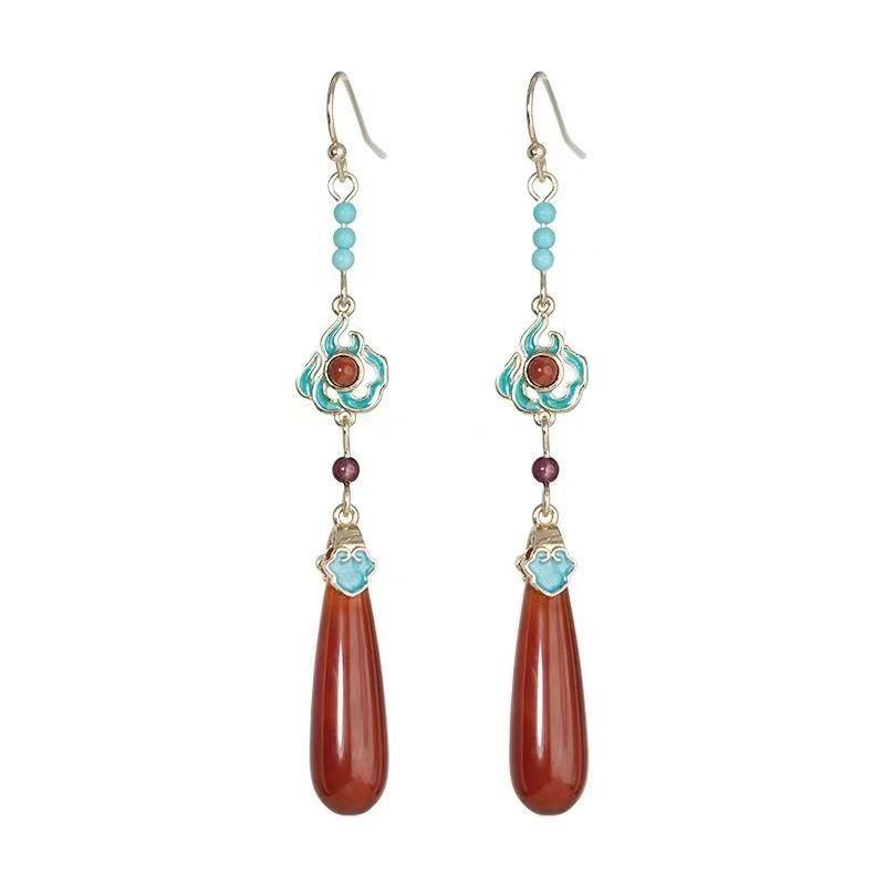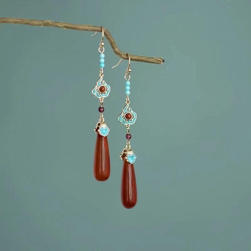 Aretes Originales Largos Rojos Gota de Agua Imitación Diancui Nuevos Aretes Chinos Aretes para Mujer Retro Elegantes Combinables Nuevos Aretes