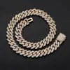 Collar de hip-hop europeo y americano transfronterizo de 15 mm con doble fila de circonitas y diamantes, cadena cubana para hombre, joyería de marca Tide al por mayor