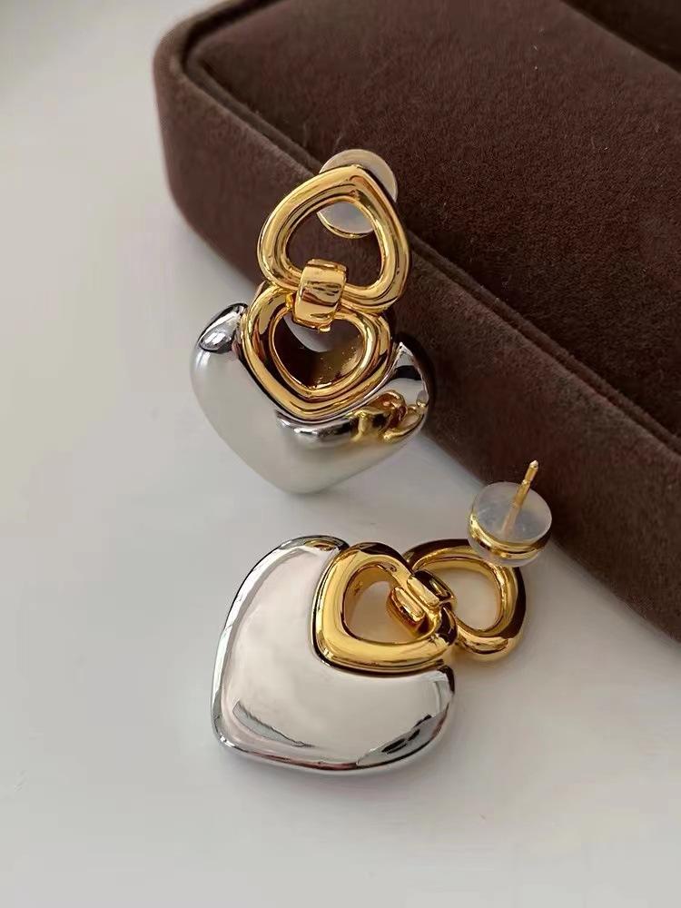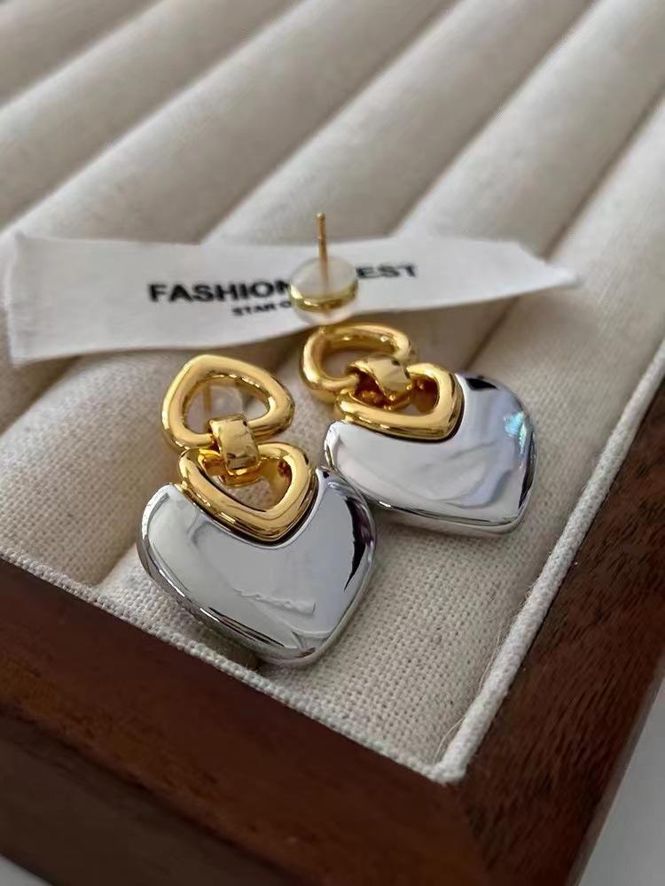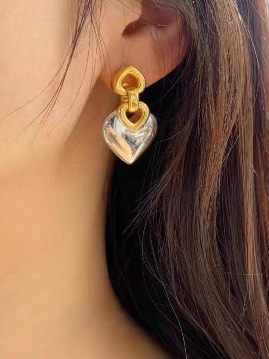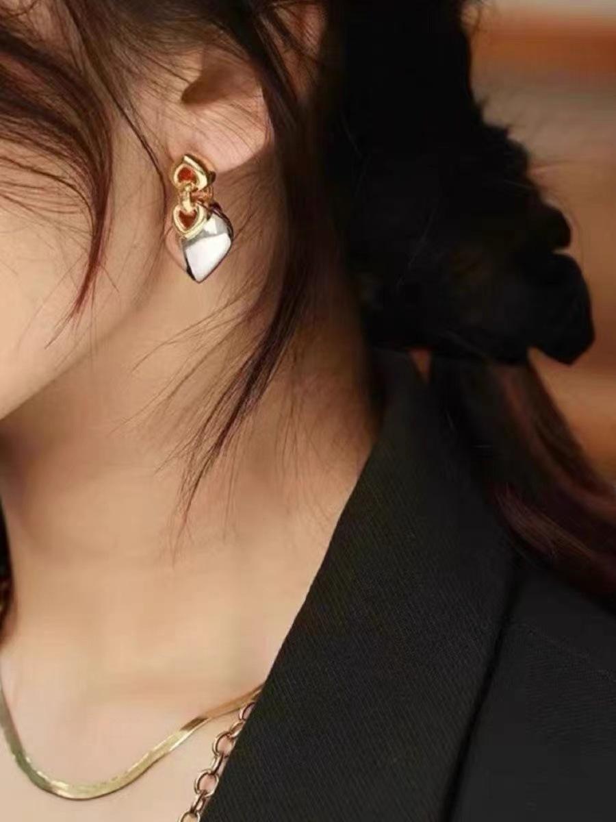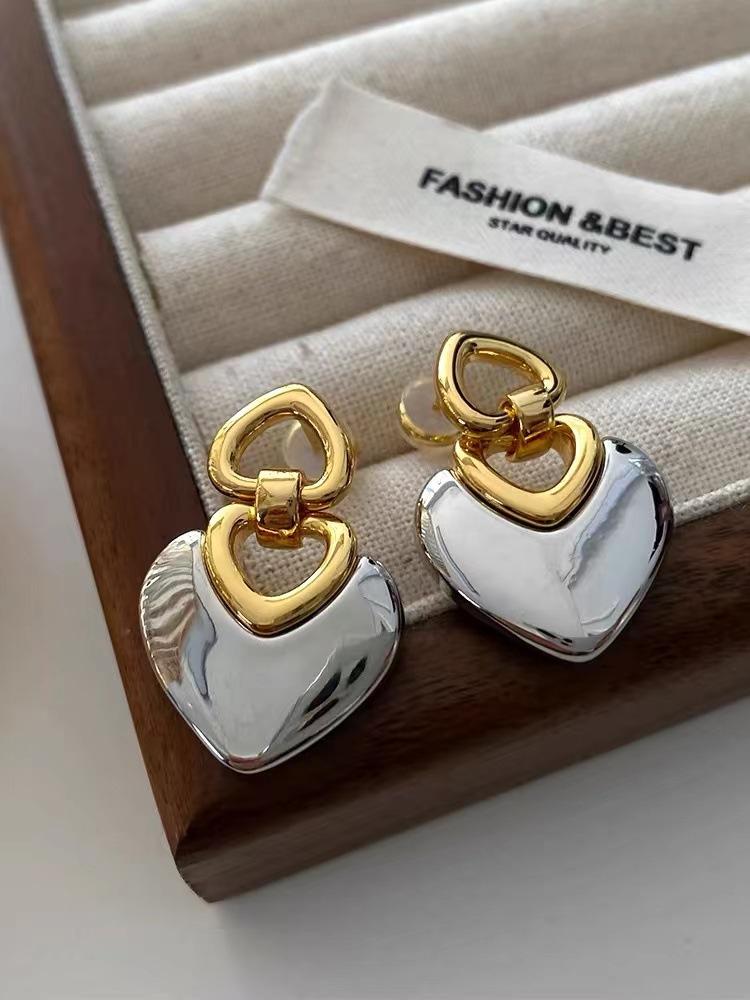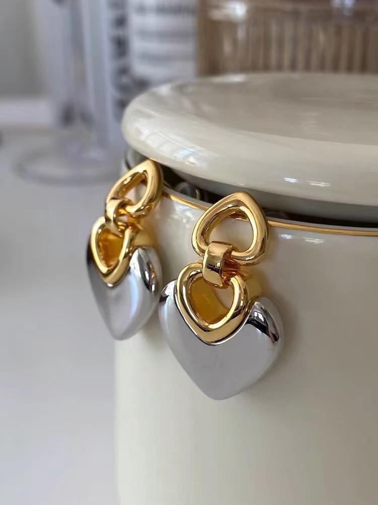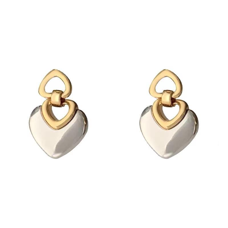 Aretes de Corazón Bicolor 2024 Nuevo Estilo Popular Aretes Únicos de Alta Gama para Mujer Aretes Europeos y Americanos de Lujo Ligero con Forma de Corazón
