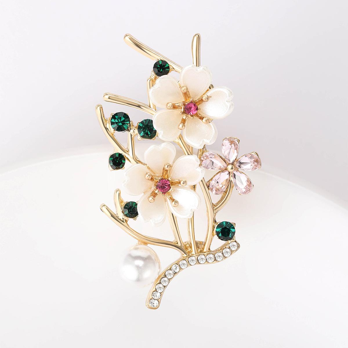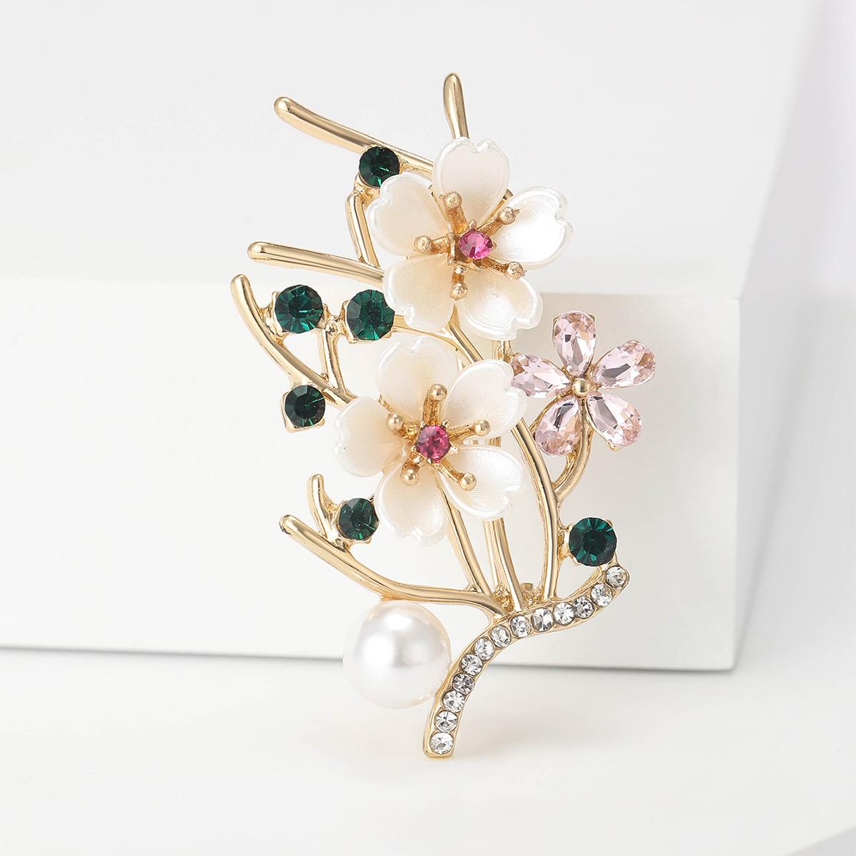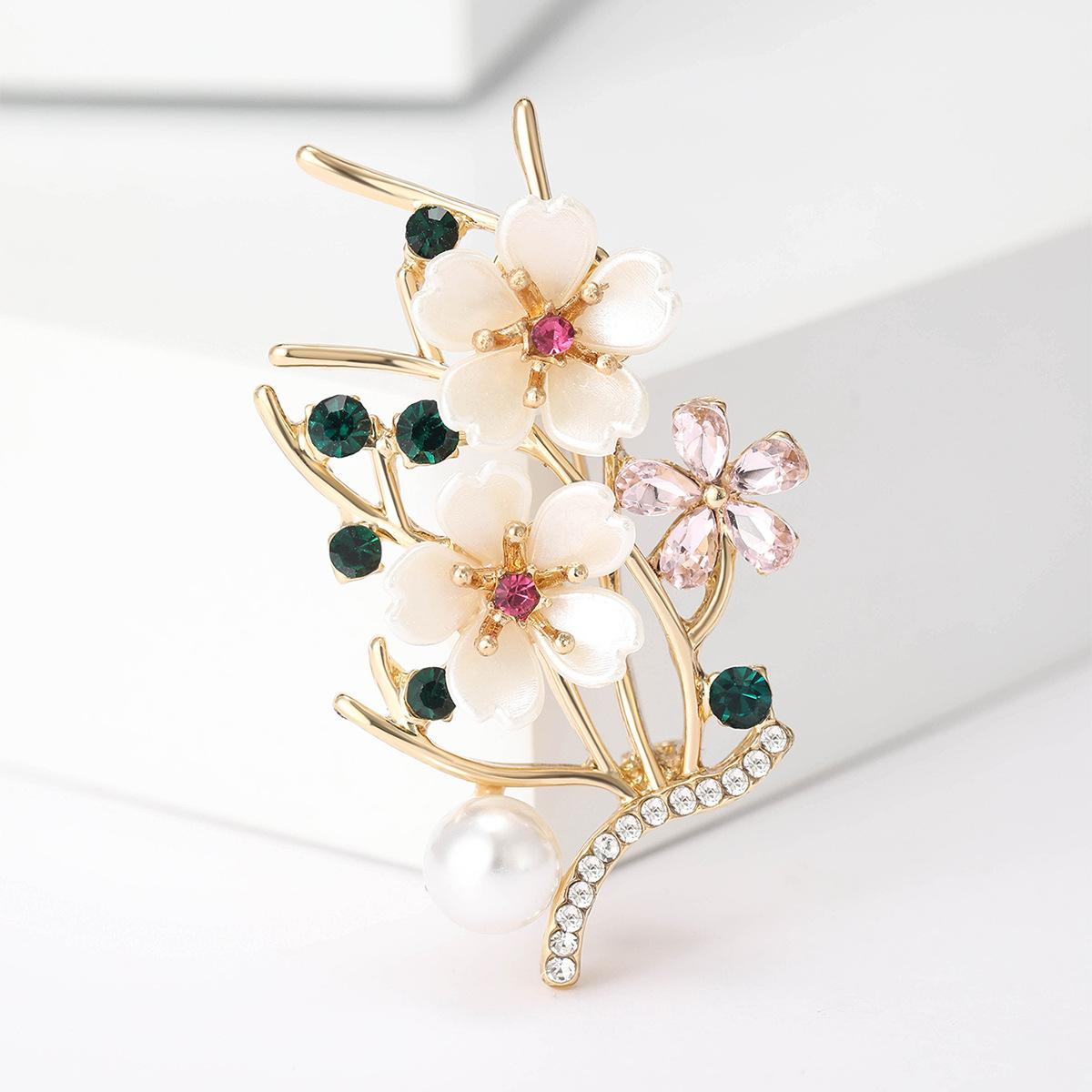 Nuevo y elegante broche de flor de durazno con perla de moda dulce, nuevo accesorio de ropa elegante de estilo nacional que combina con todo, alfiler para el cuello