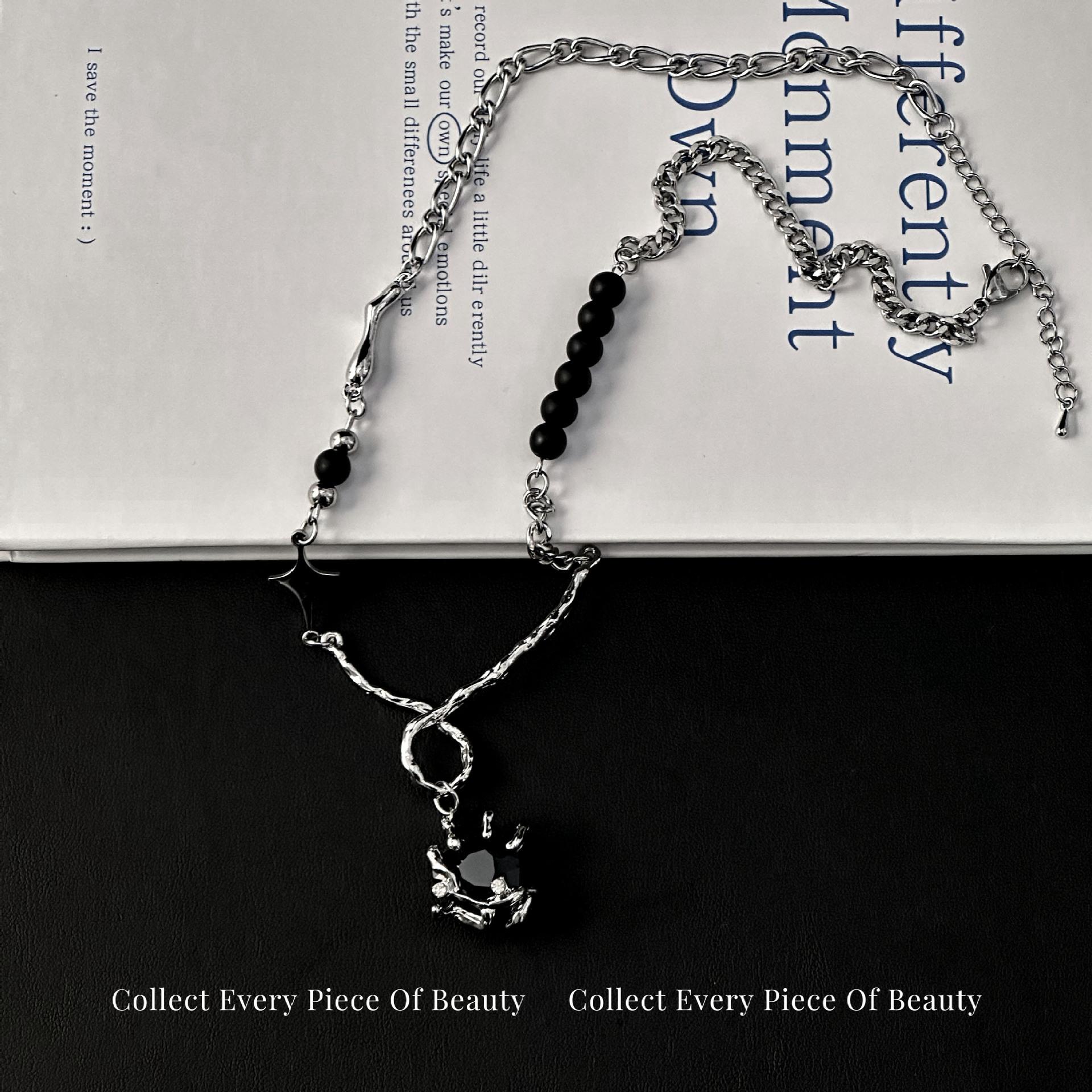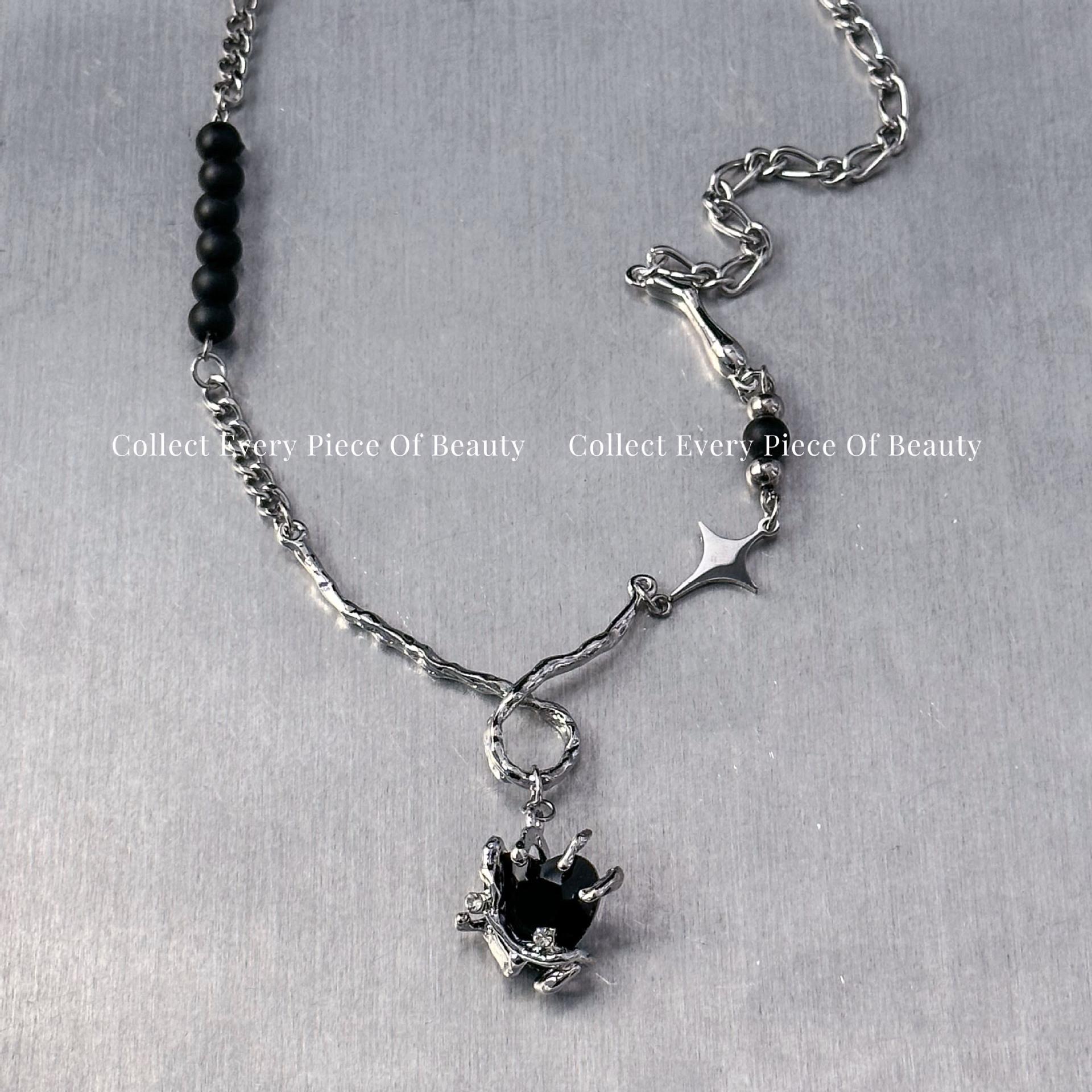 Collar de acero de titanio con forma de corazón de circonita, personalizado, estilo dulce y moderno, elegante y sexy, con diseño de estrella, joyería de lava para mujer