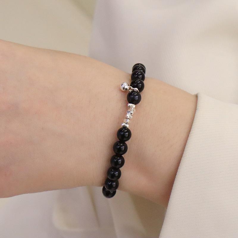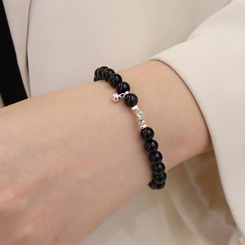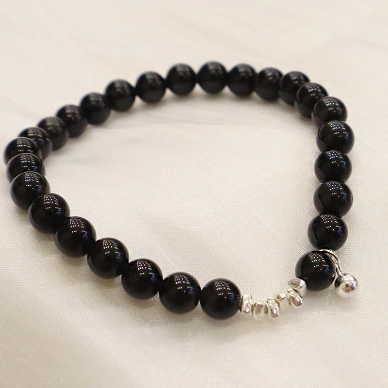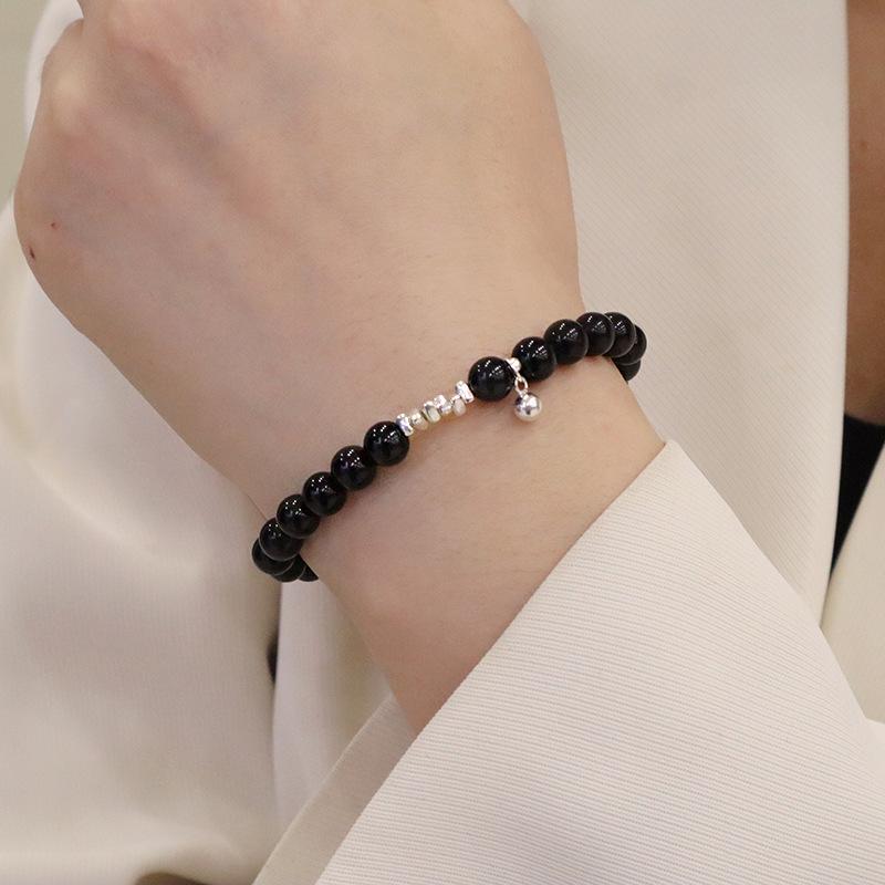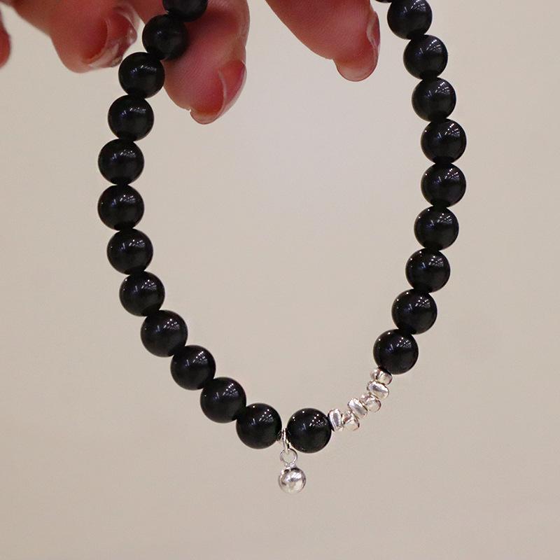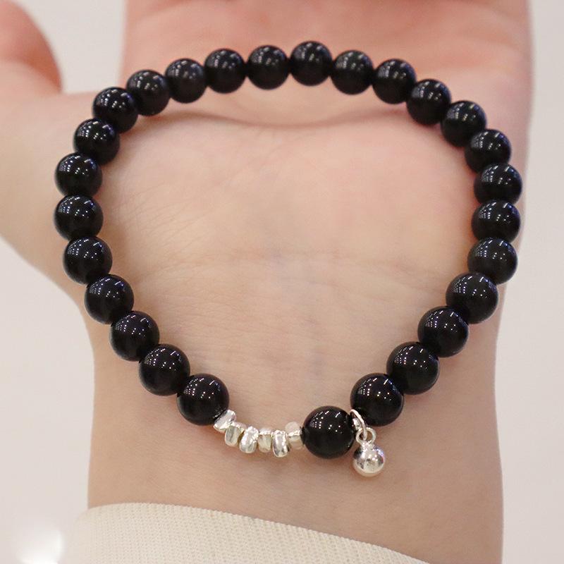 Pulsera de obsidiana de plata esterlina, pulsera de pareja de cristal, pulsera elástica simple Joker, venta al por mayor