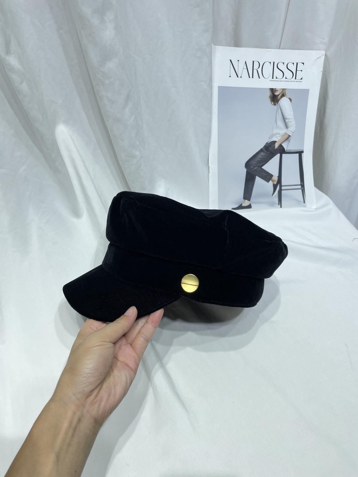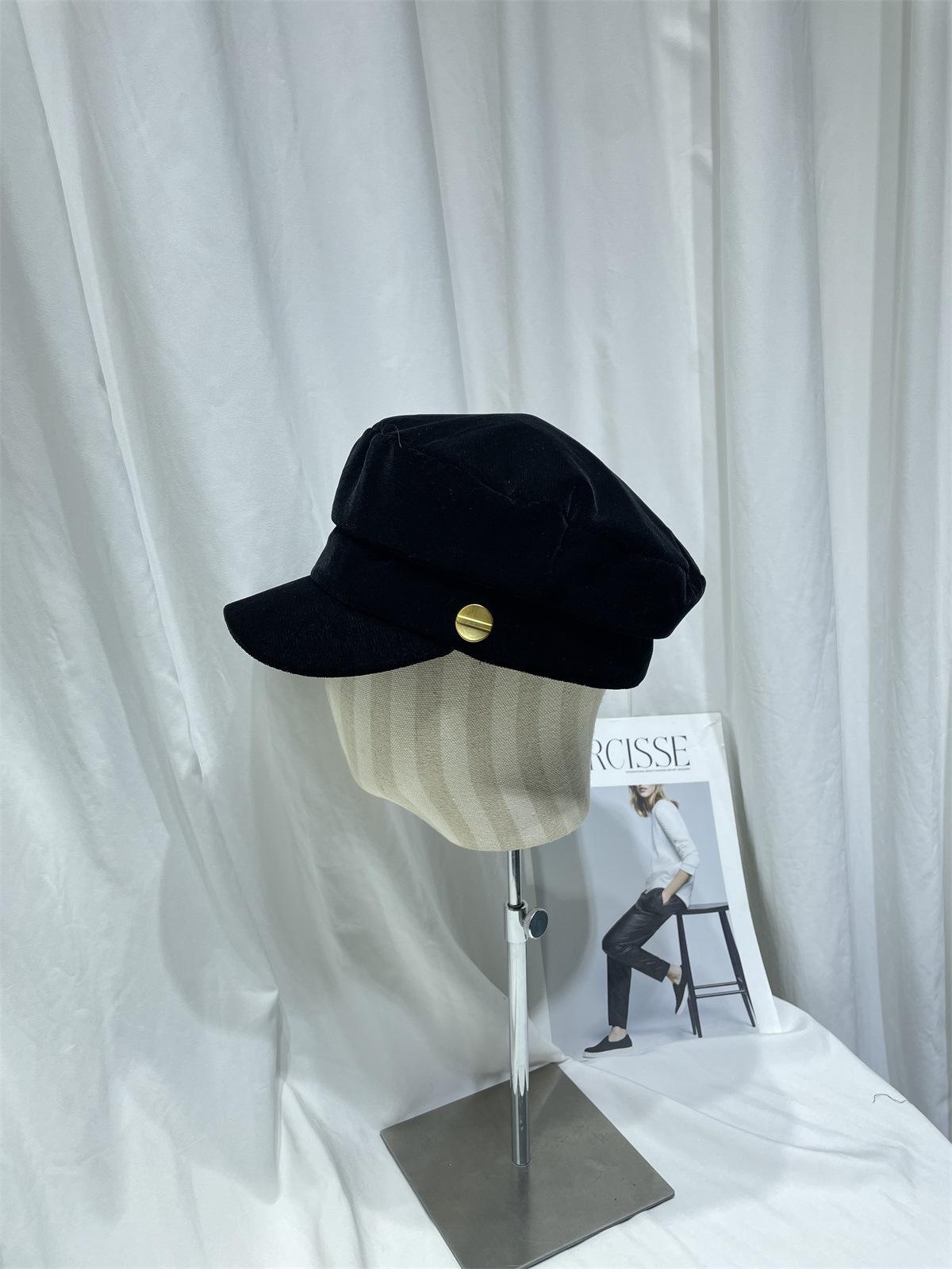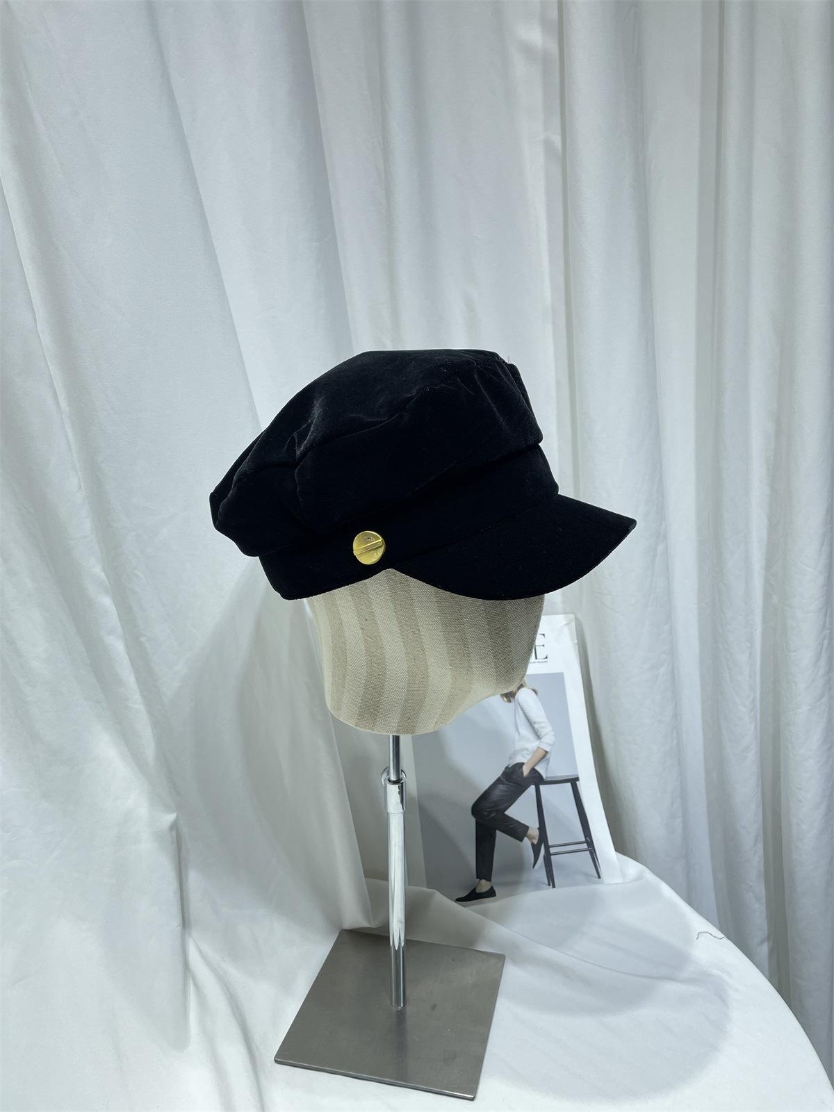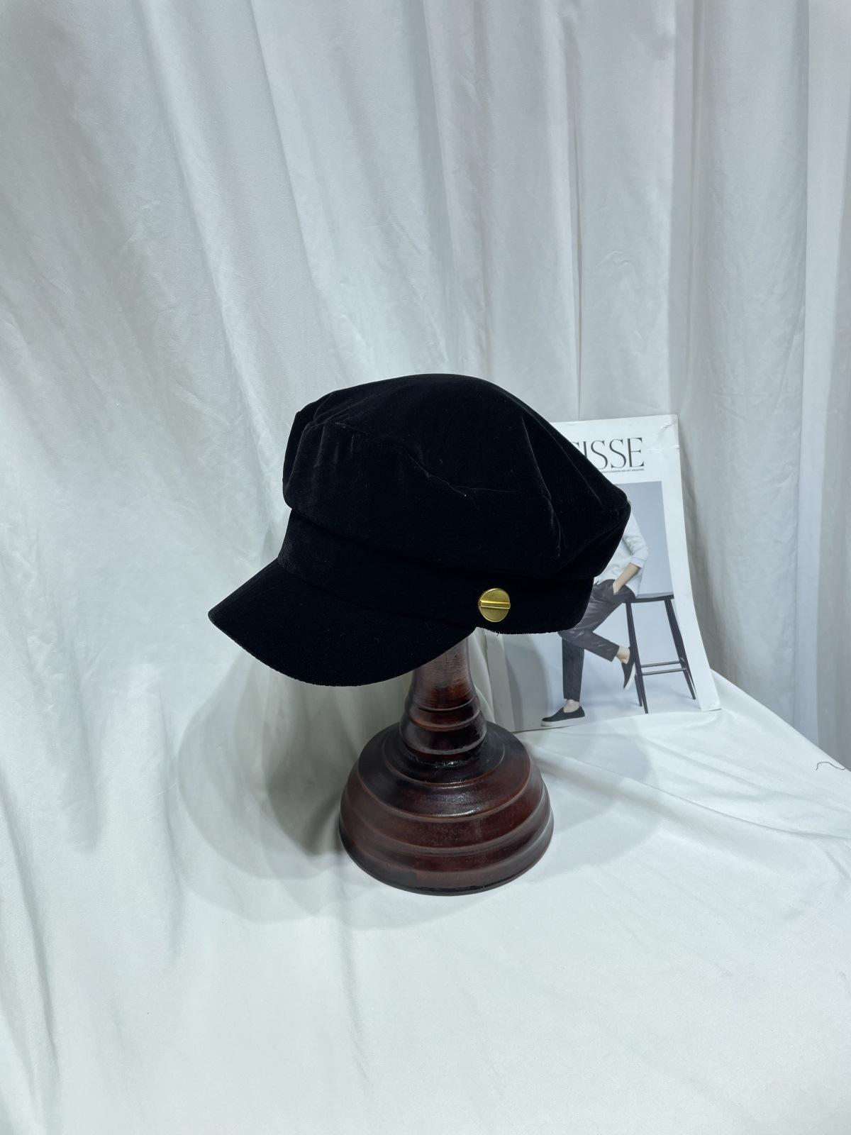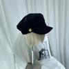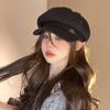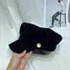 Moda de otoño e invierno boina de terciopelo negro de pico combinable para mujer sombrero de marinero retro británico de copa plana sombrero de repartidor octogonal