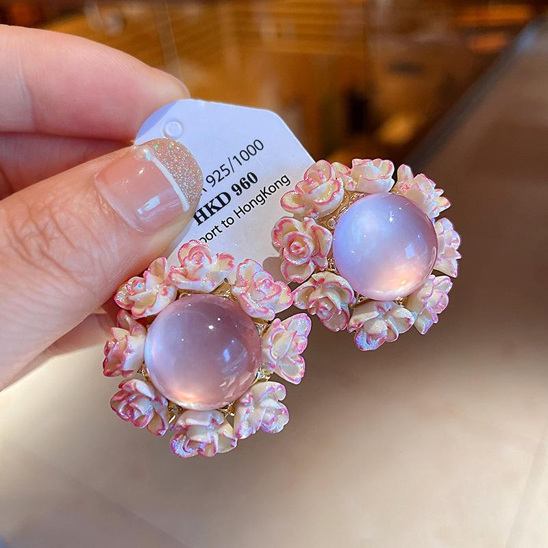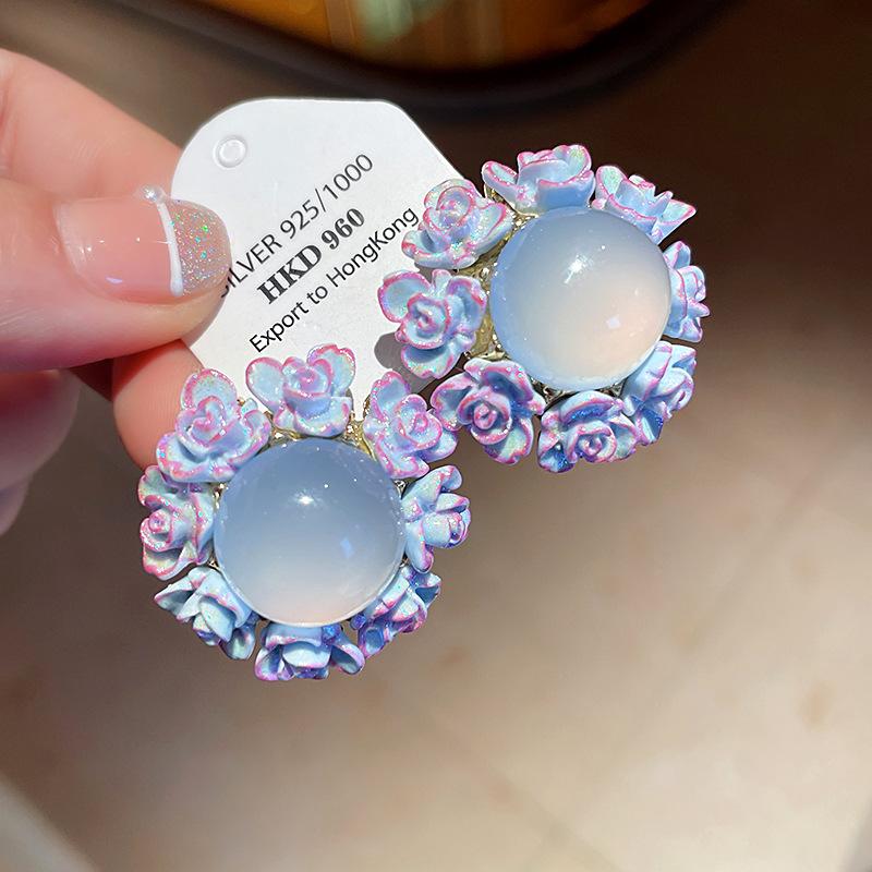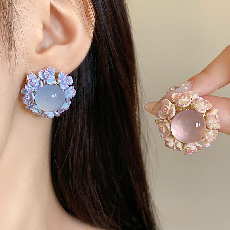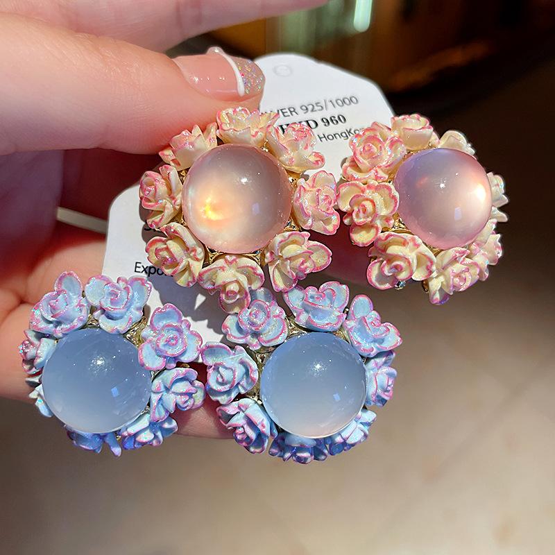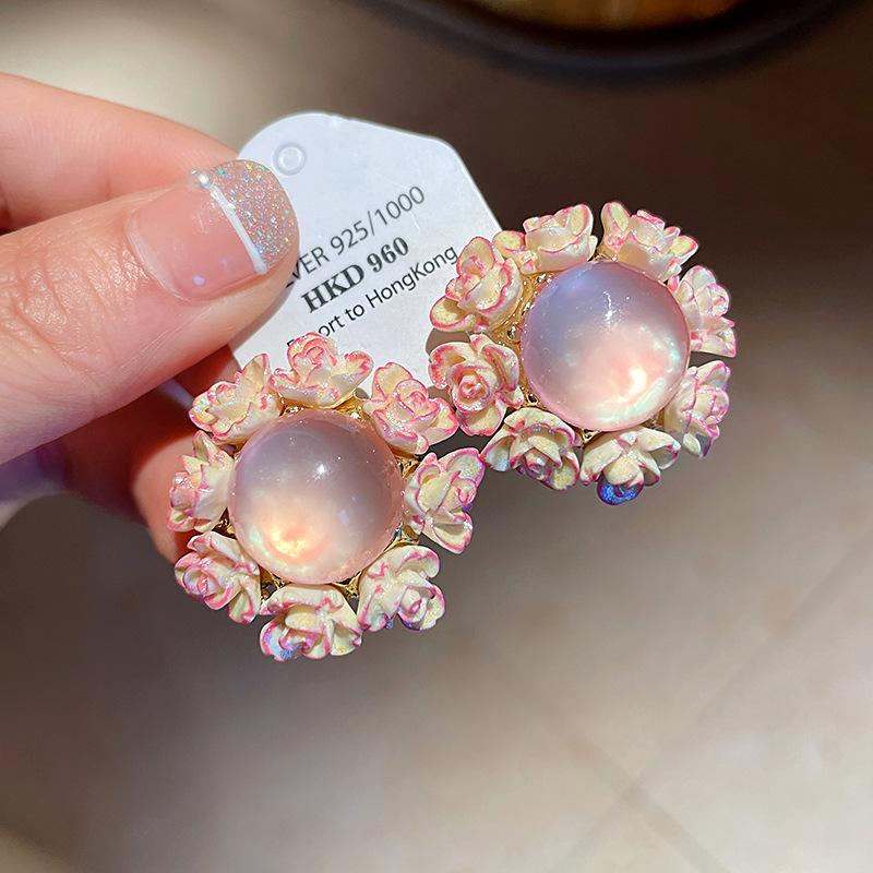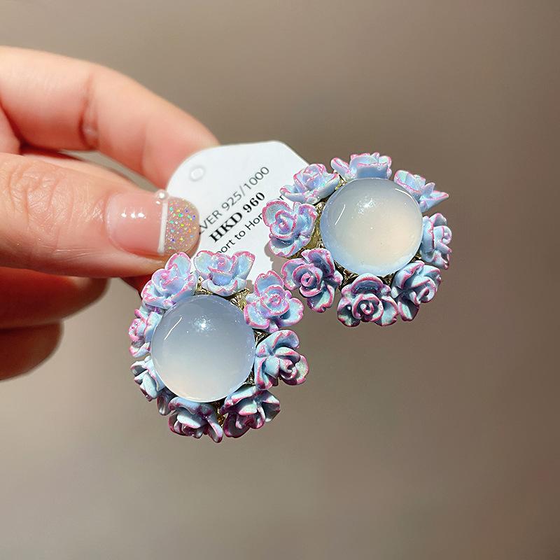Pendientes de resina con flores redondas y aguja plateada, pendientes Mori de alta gama, dulces, exquisitos pendientes Joker de verano, venta al por mayor para mujer
