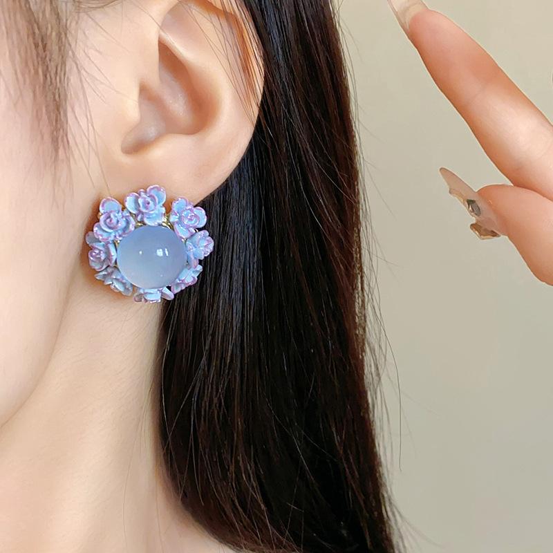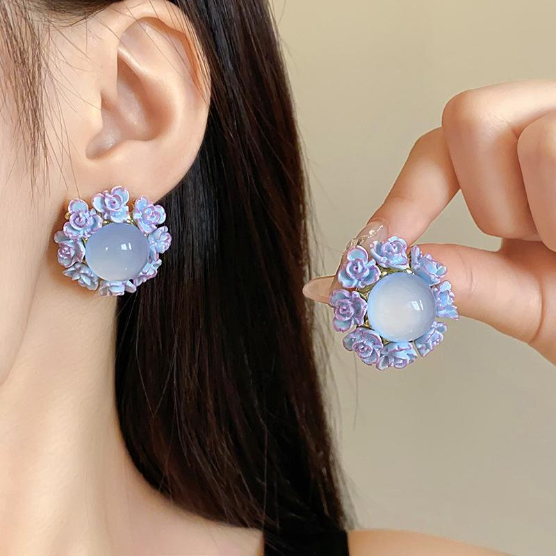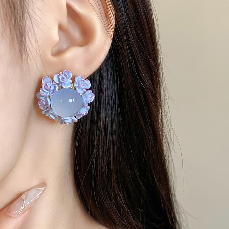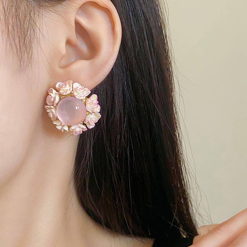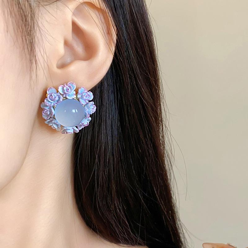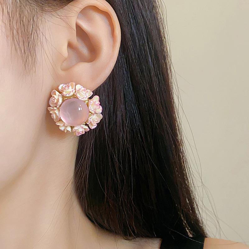 Pendientes de resina con flores redondas y aguja plateada, pendientes Mori de alta gama, dulces, exquisitos pendientes Joker de verano, venta al por mayor para mujer