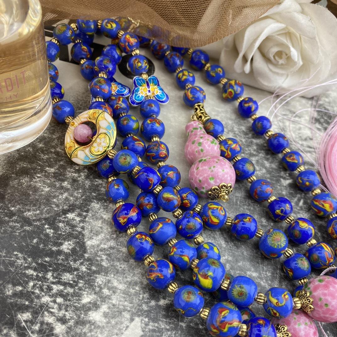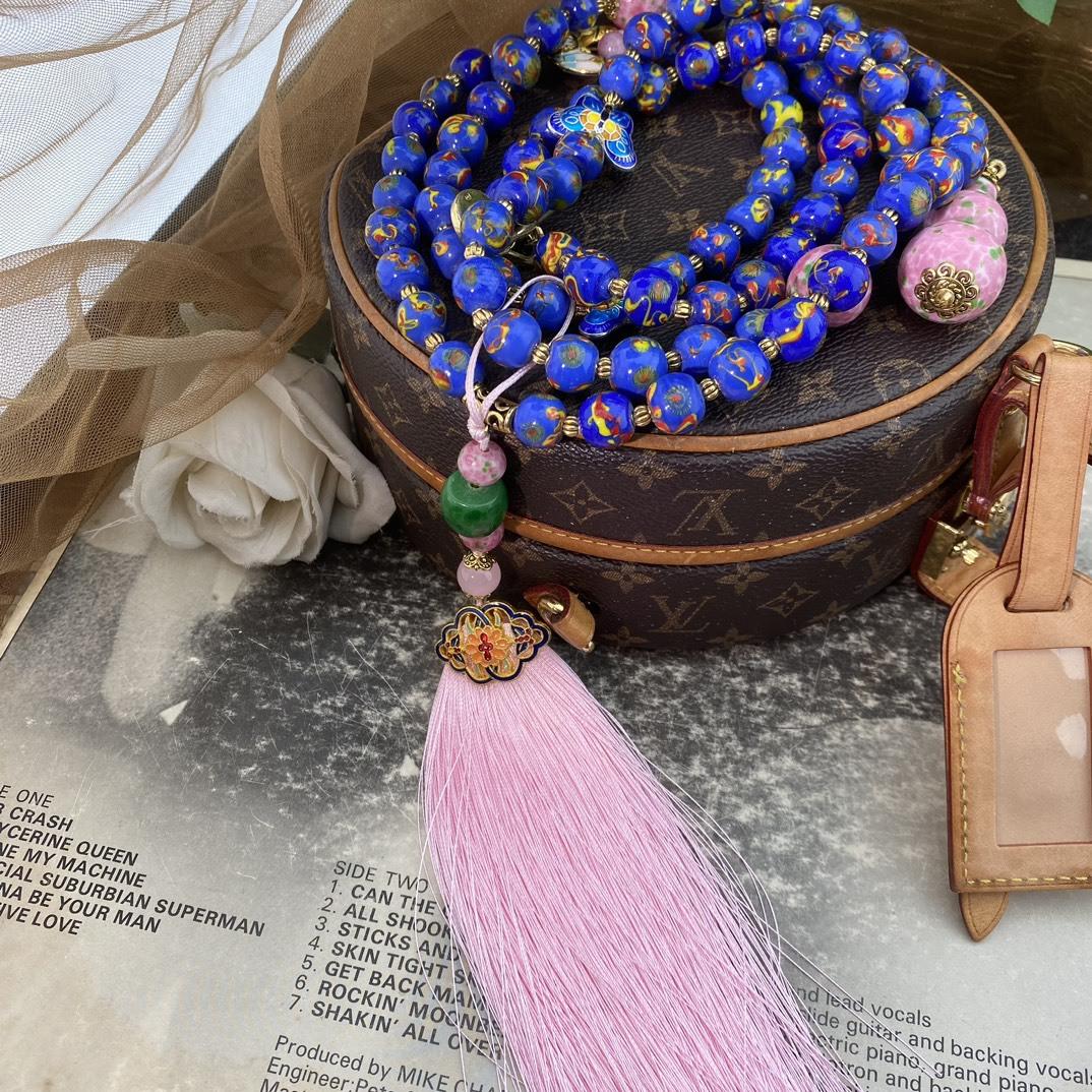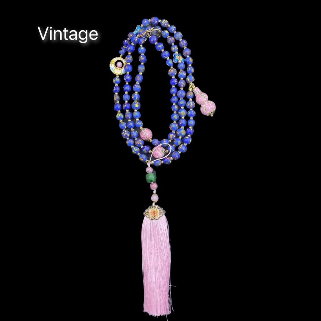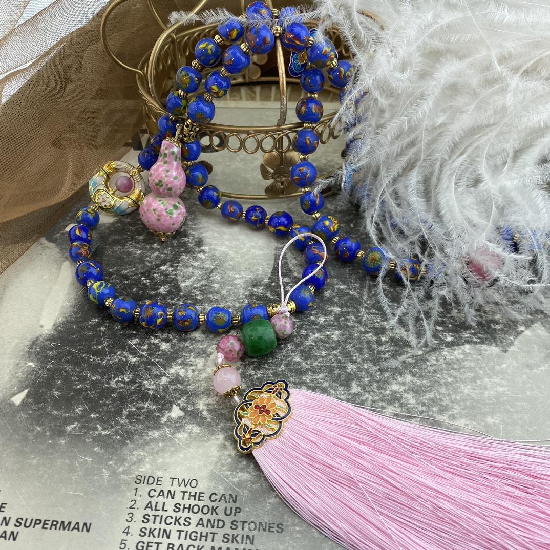 Collar de borla larga con ojo de fénix azul, rana rosa y esmeralda de estilo palaciego de mediados de la antigüedad de Mi Nan