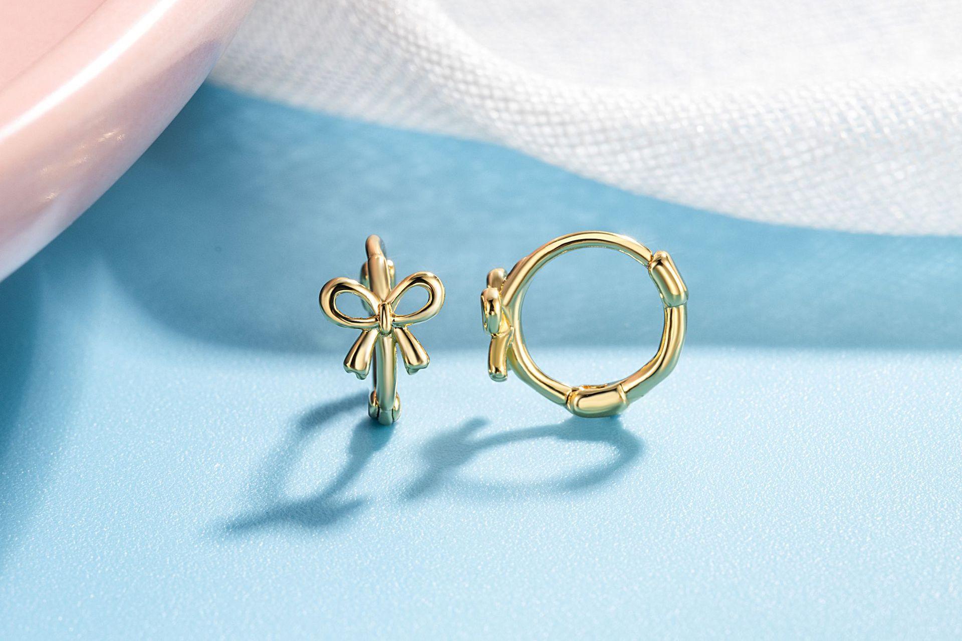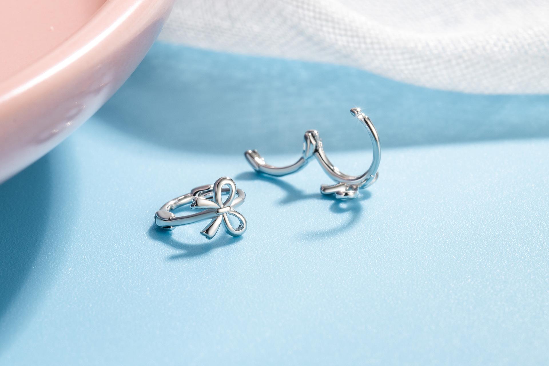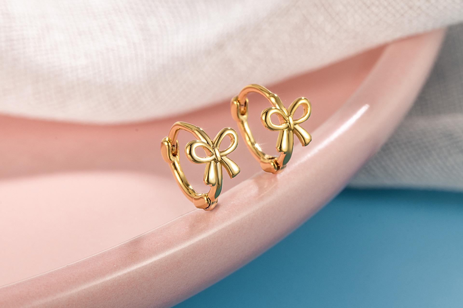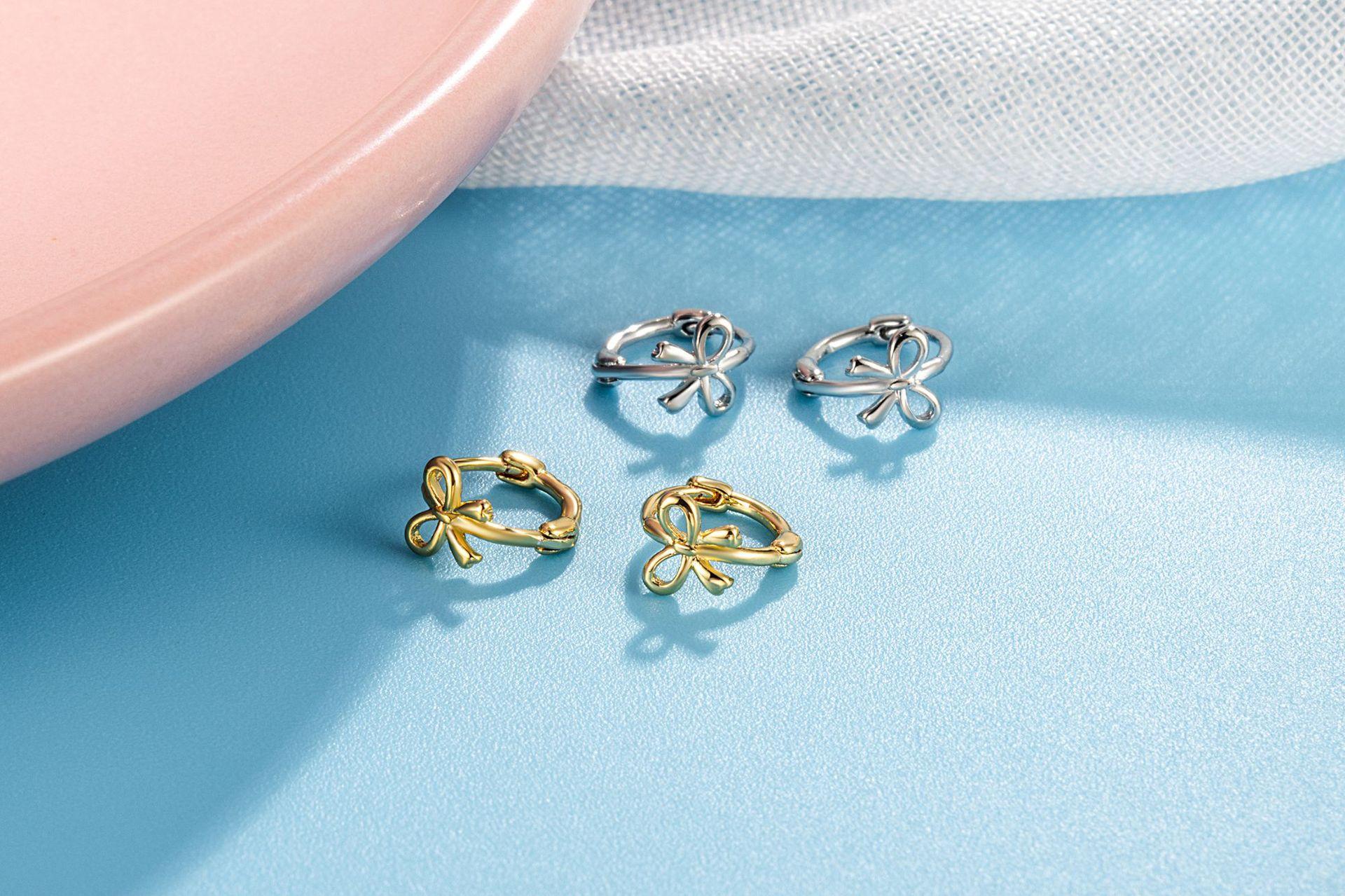 Line bow ear buckle (6MM gold color), Line bow ear buckle (6MM white gold), Line bow ear buckle (8MM gold colo...