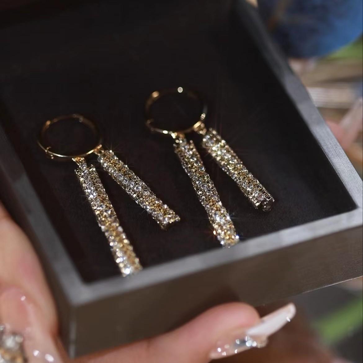 Pendientes de borla de circonita geométrica elegantes y de lujo, ligeros, con diseño de nicho, pendientes de gran sentido para mujer, nuevos y populares pendientes 2024