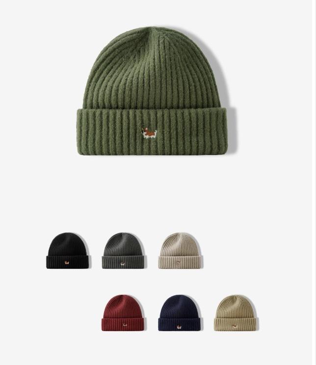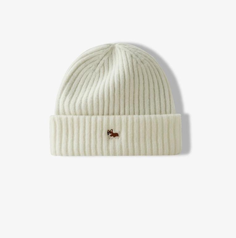 Gorro de punto con bordado de zorro de dibujos animados para hombre y mujer, cálido gorro de lana de calle estilo coreano con protección para los oídos para otoño e invierno.