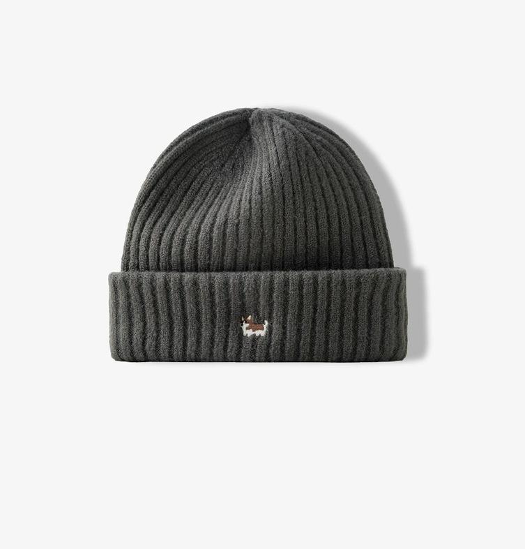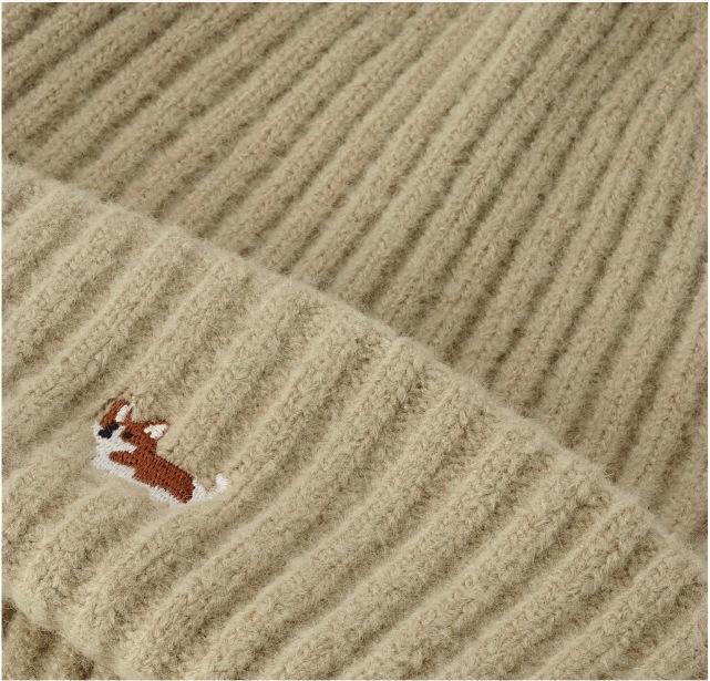 Fox embroidered wool hat-Black, Fox embroidered wool hat-Gray, Fox embroidered wool hat-milky white, Fox embro...