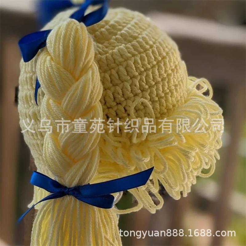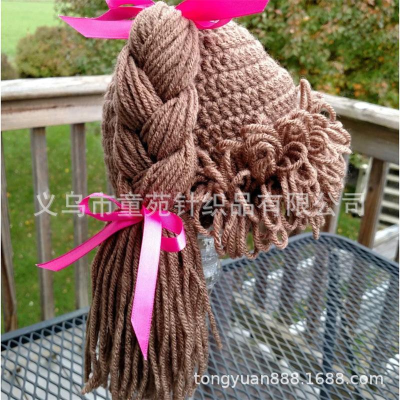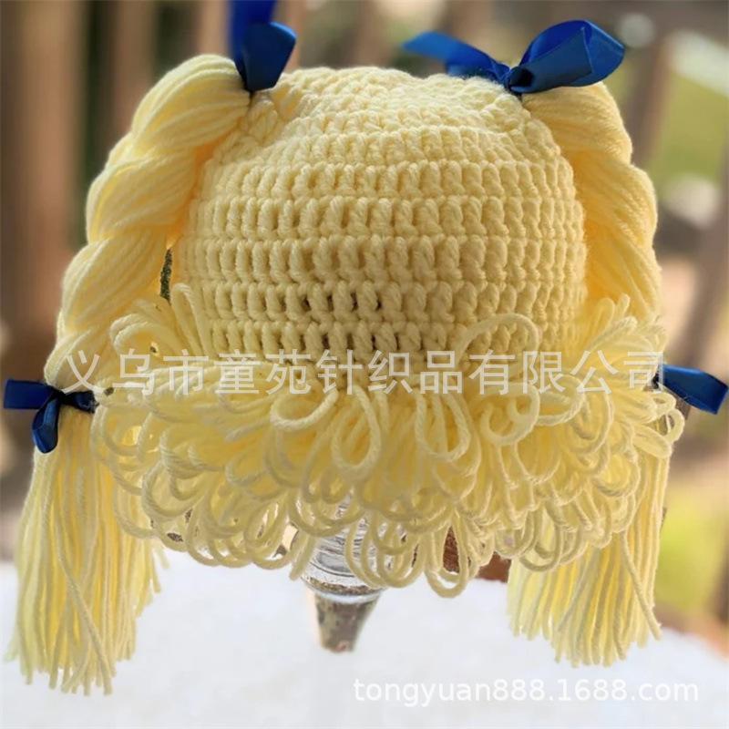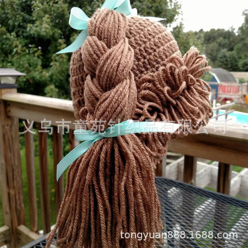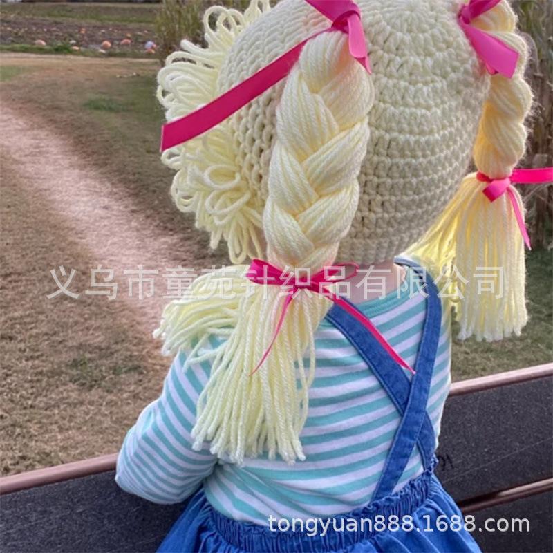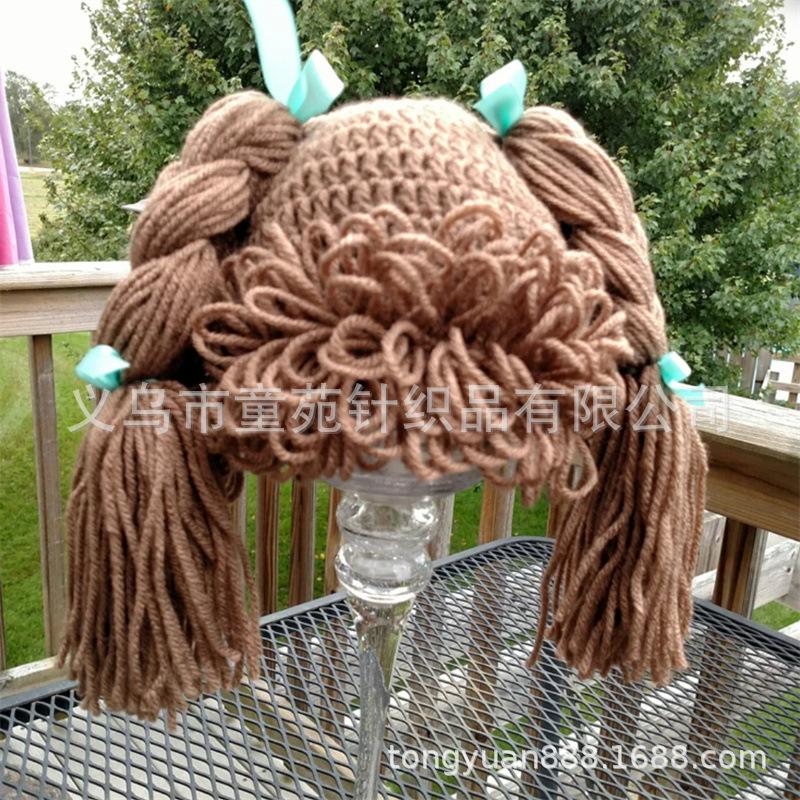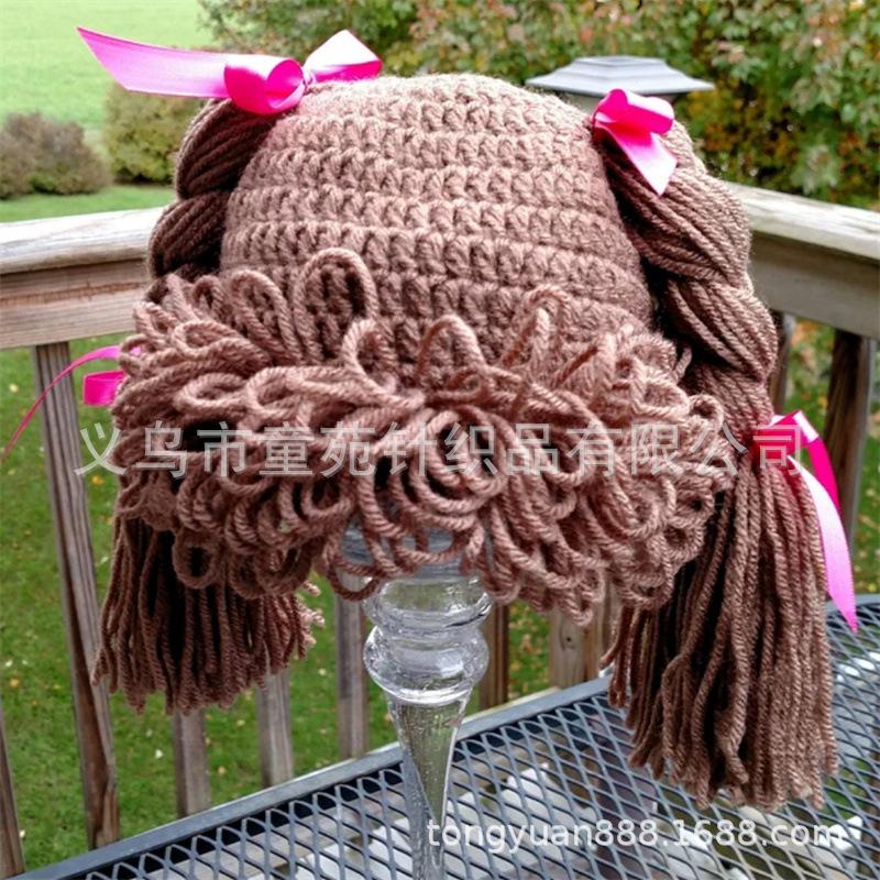 Nuevo gorro Cabbage Patch Kid tejido a mano, totalmente transfronterizo de Amazon, divertido gorro con peluca para niños.