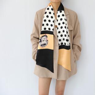 | |  | | | | Nuevo de verano y otoño Cinta mediana y larga de lunares blancos y negros franceses 100% seda de morera Bufanda de seda de doble cara Cinturón al por mayor | | | | | |