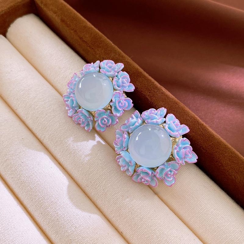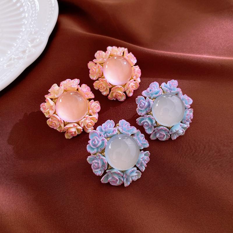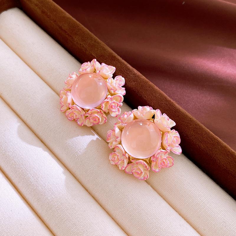 Pendientes redondos de flor de aguja de plata con atmósfera elegante, pendientes de temperamento ligero, pendientes retro franceses de alta gama al por mayor