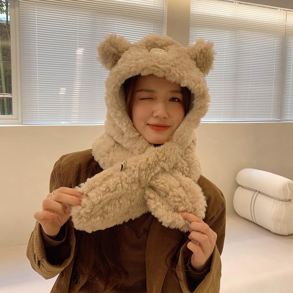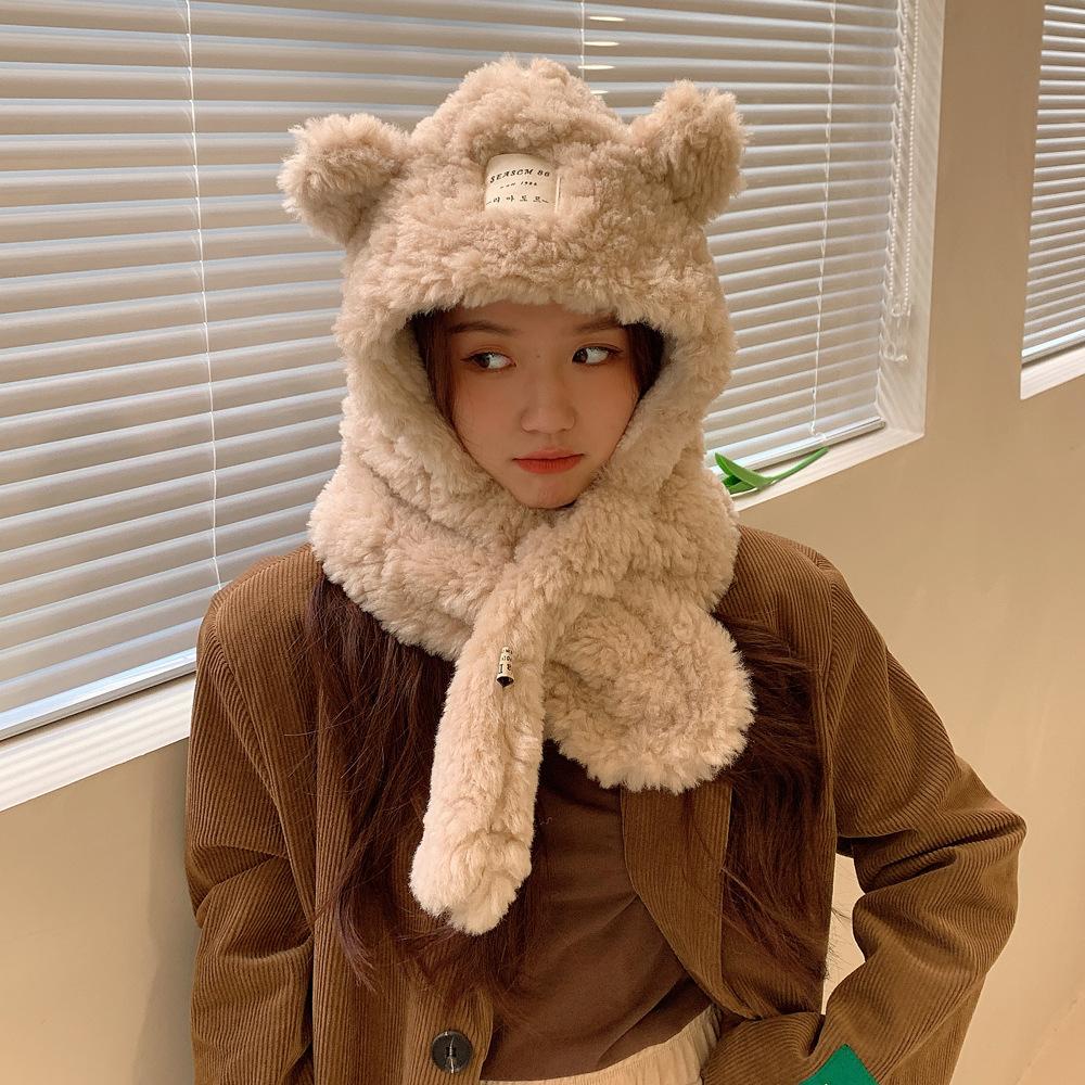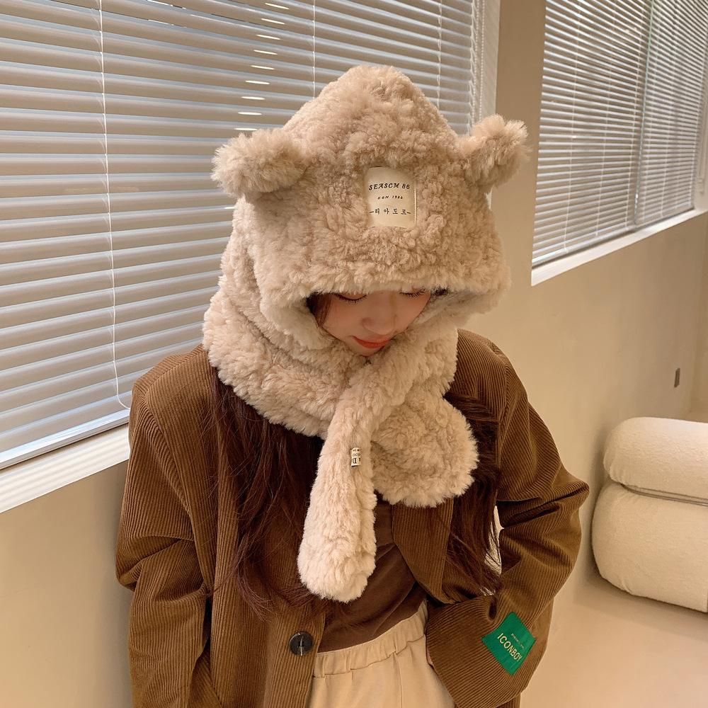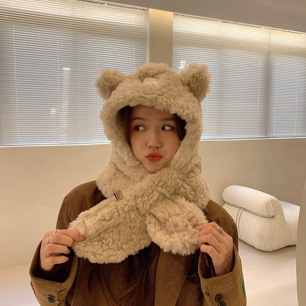 Bufanda con orejas de oso para mujer, gorro de invierno de alta calidad, cálida y con capucha de felpa gruesa.