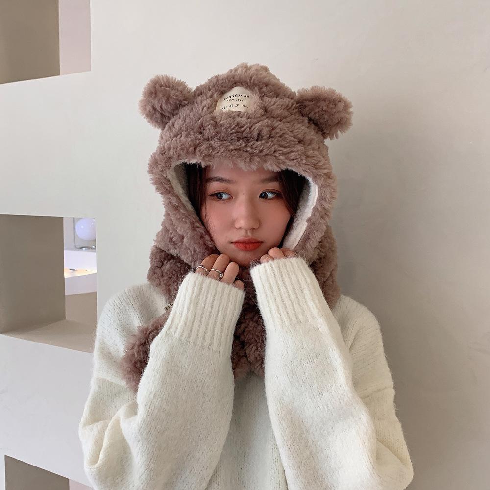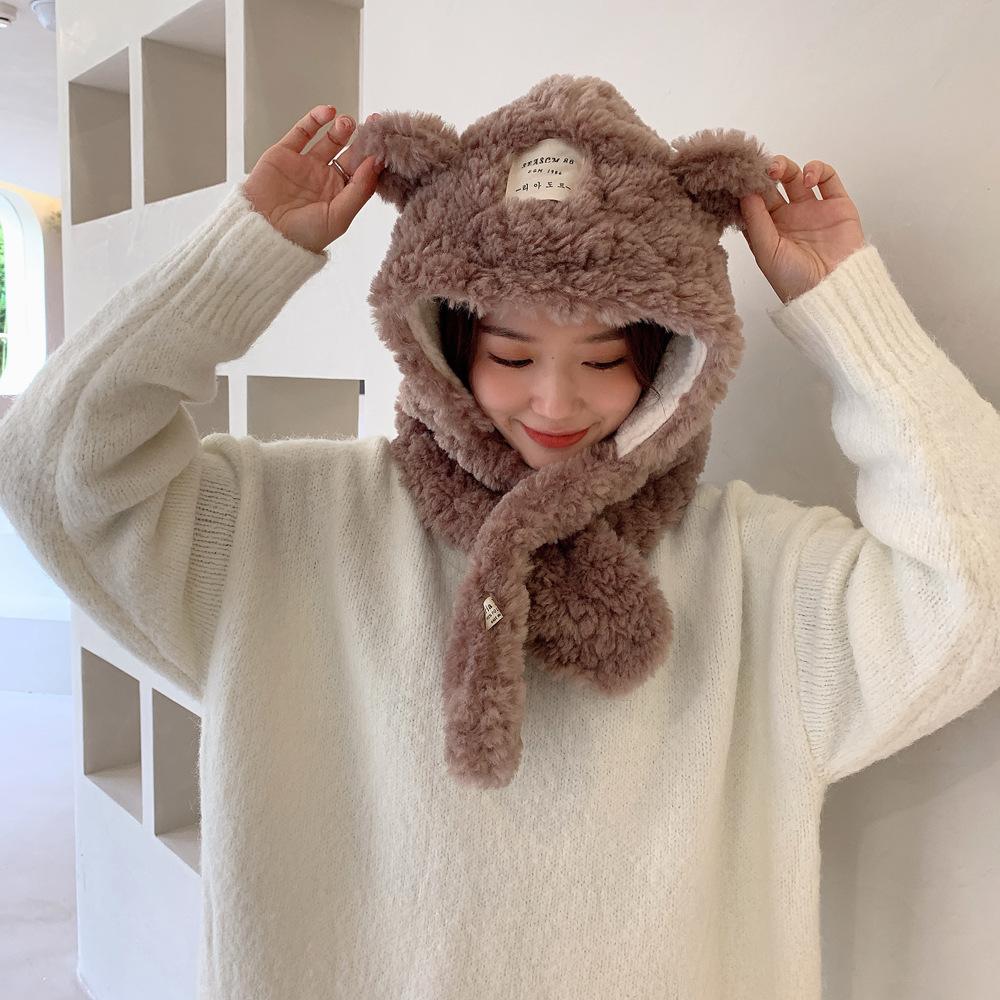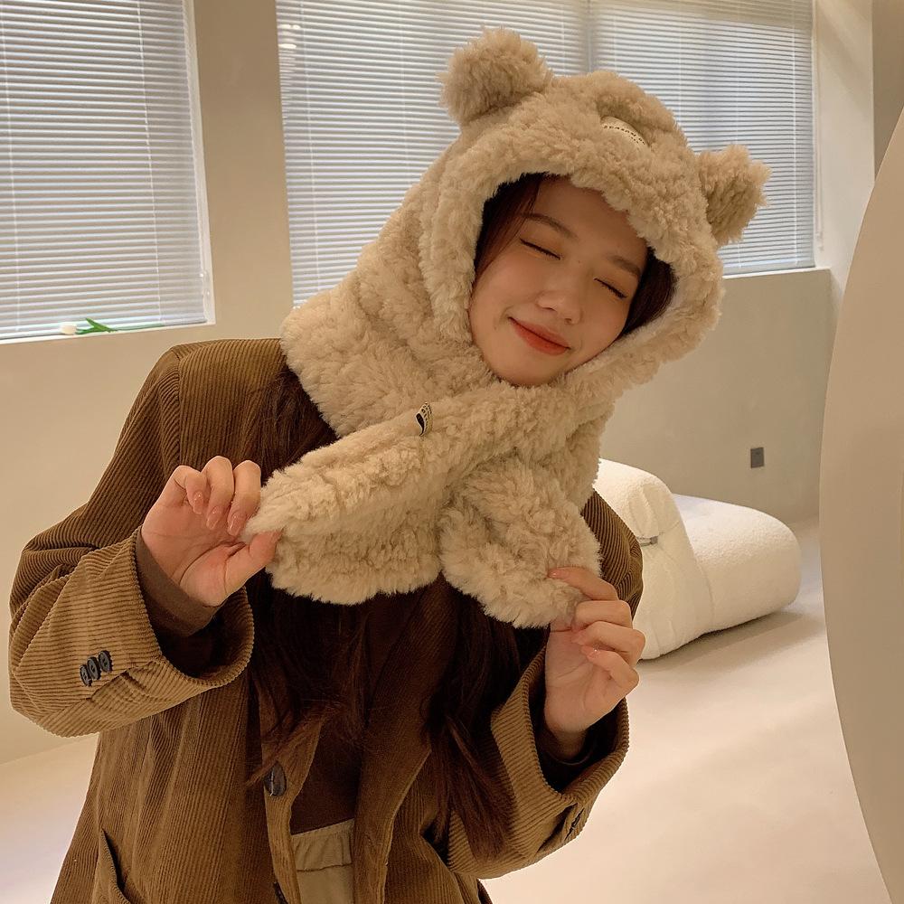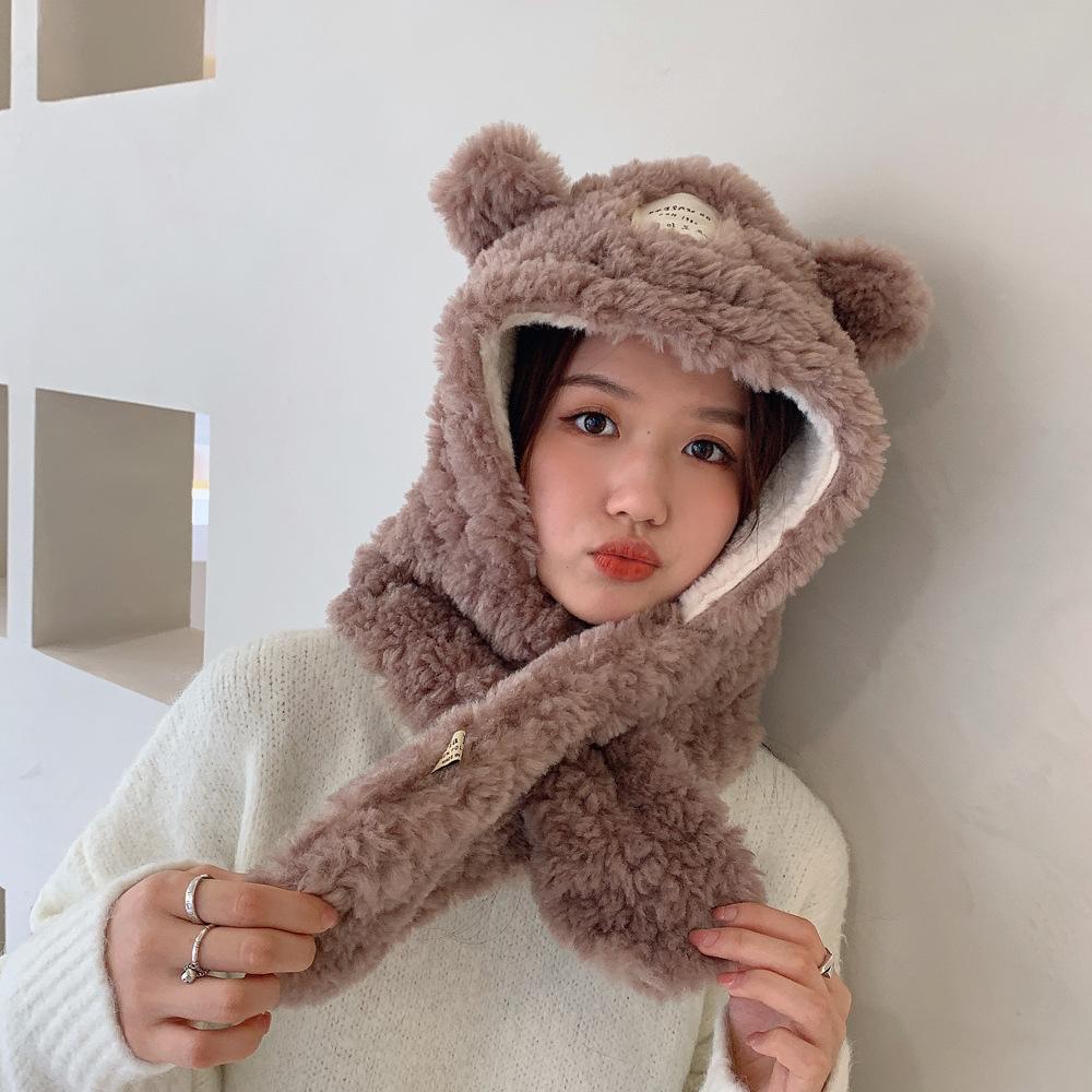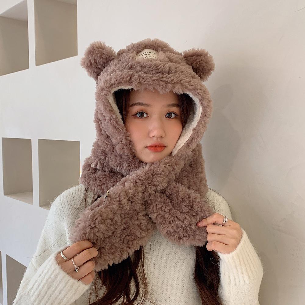 Bufanda con orejas de oso para mujer, gorro de invierno de alta calidad, cálida y con capucha de felpa gruesa.
