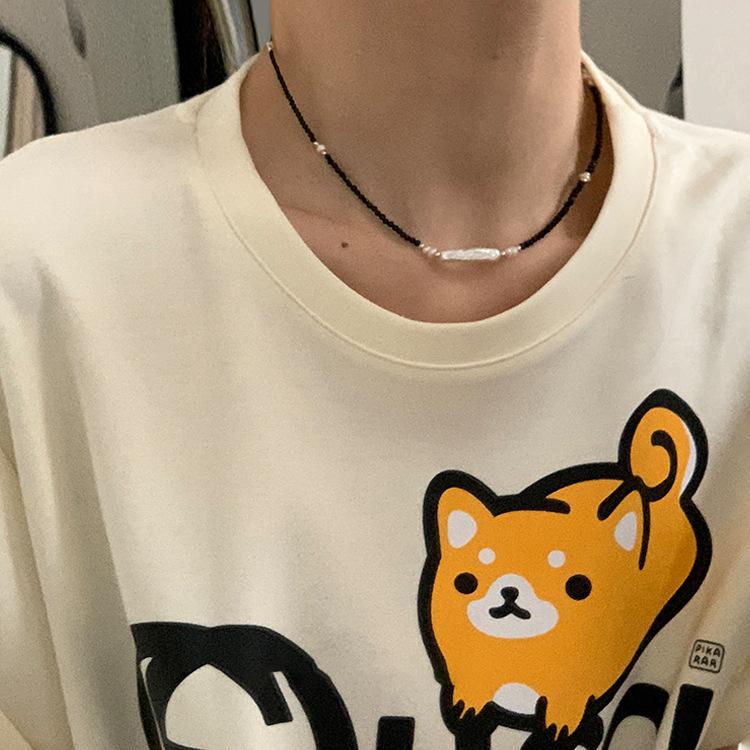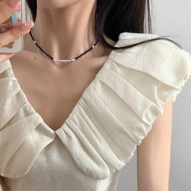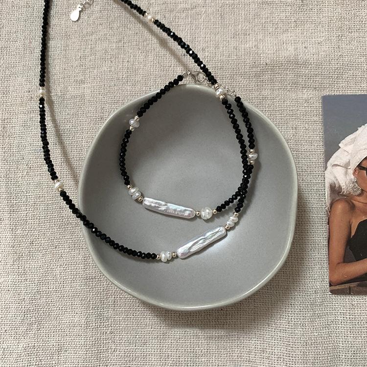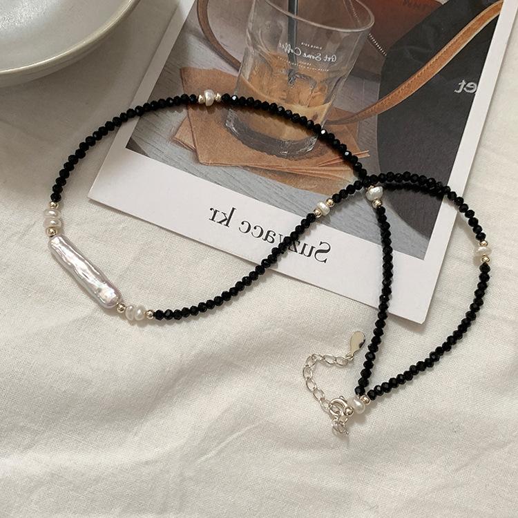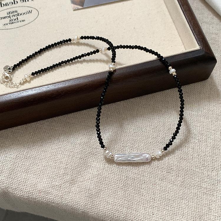 Collar de cristal negro con perlas irregulares para mujer, diseño con estilo retro, estilo nicho, sencillo, combinable con todo, cadena de clavícula.