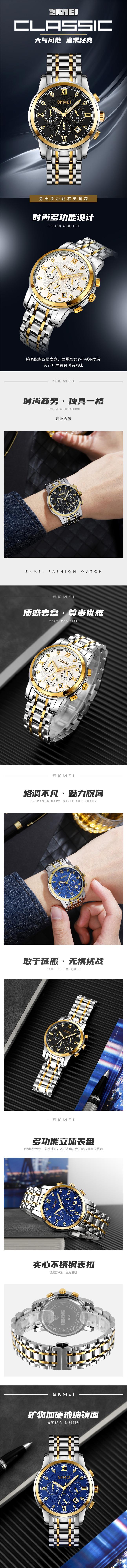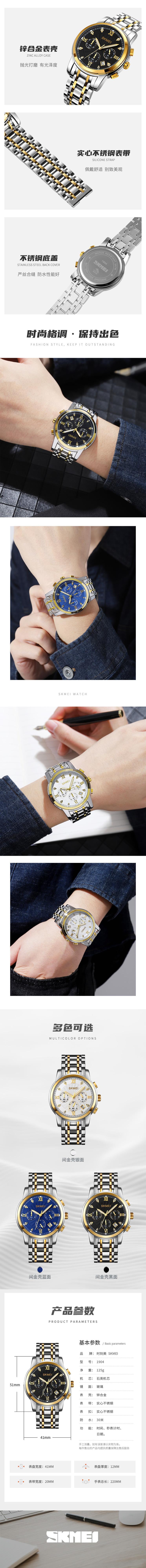 | Material | Caja de aleación de zinc, correa de acero inoxidable, espejo de cristal reforzado con minerales, tapa inferior de acero inoxidable, hebilla de acero inoxidable. |