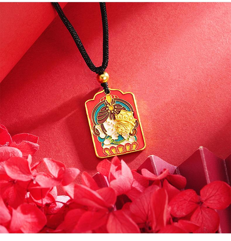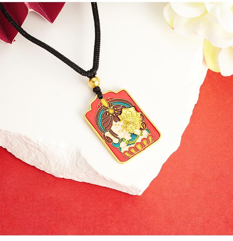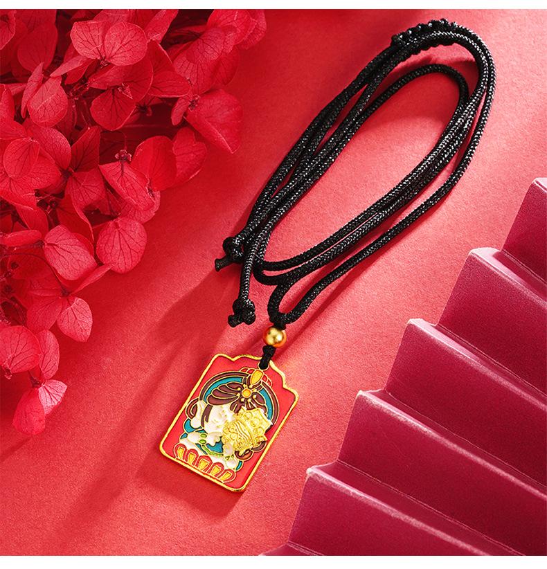 Collar de bodhisattva ksitigarbha de oro y arena de Vietnam, esmalte de estilo chino, lindo colgante de tarjeta de la paz de doble cara, joyería al por mayor