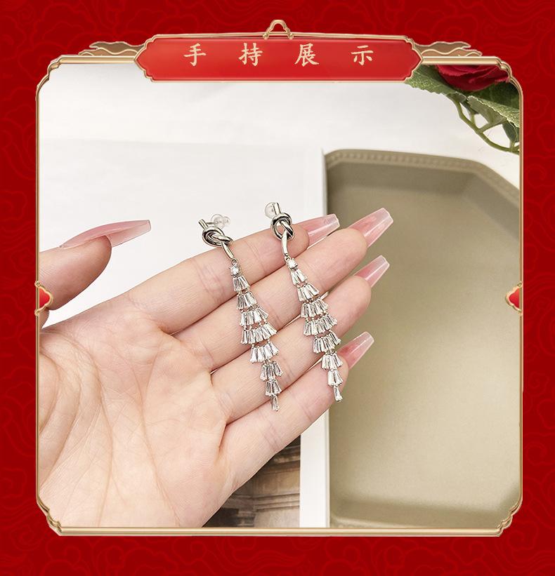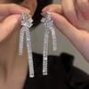 Nuevo Estilo Lujo Ligero Super Flash Zirconia Cristal Blanco Aretes Moda Femenina Personalizada Elegante Moderna Fresca Combinable Estilo Largo