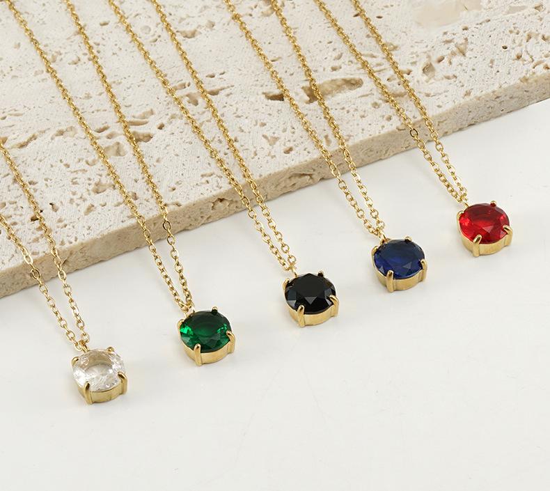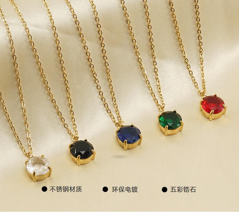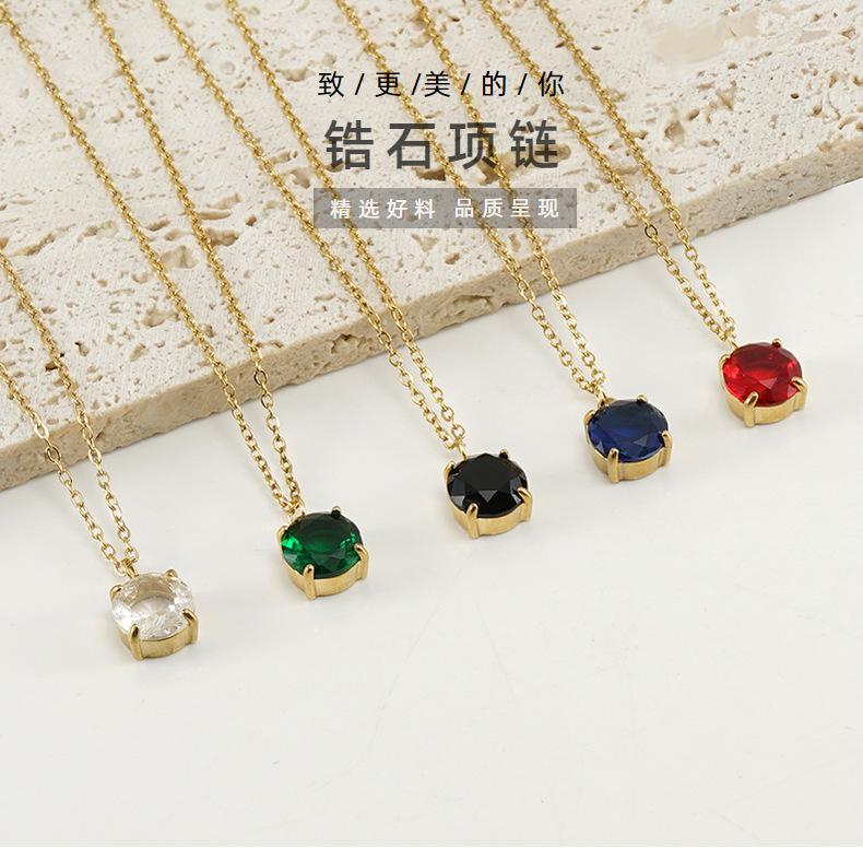 Collar de circonita cuadrada simple estilo INS, suministro transfronterizo, colgante de diamante de acero inoxidable de 18 quilates con temperamento, cadena de clavícula, modelo femenino