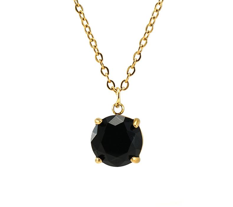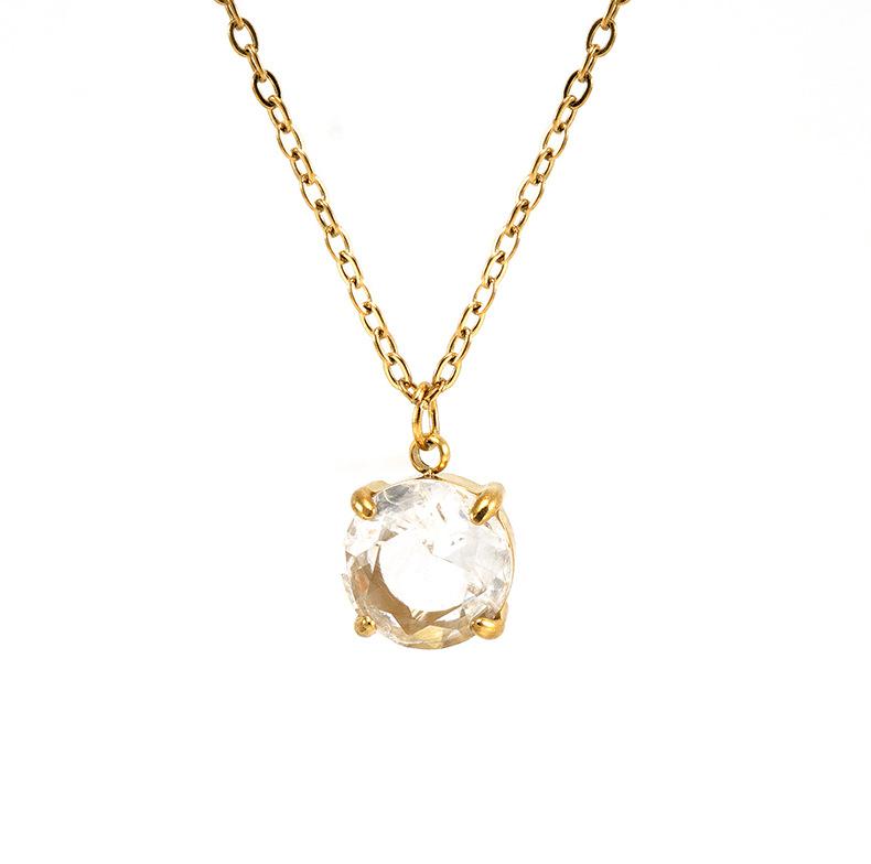 Collar Redondo de Acero Inoxidable Transfronterizo con Zircón Geométrico Dorado Acero Titanio Moda Colgante Simple Cadena Clavícula para Mujer Venta al por Mayor