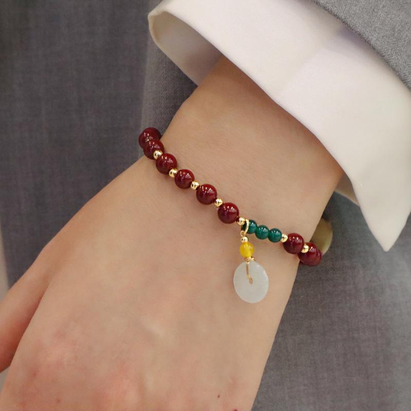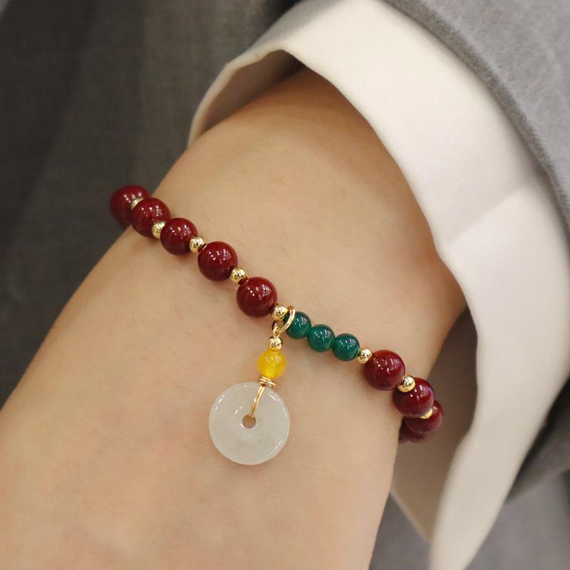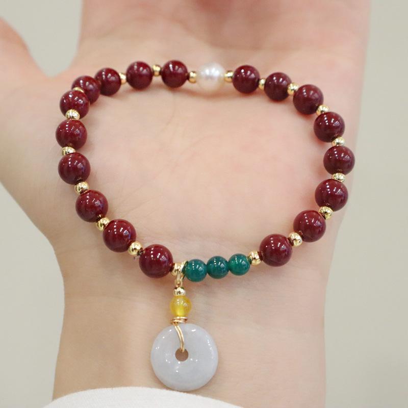 Nueva pulsera de cinabrio con hebilla de jade Ping An, pulsera de marca con oración de transferencia, joyería de estilo chino vintage con explosiones.