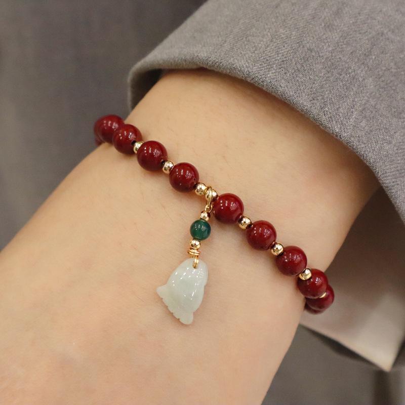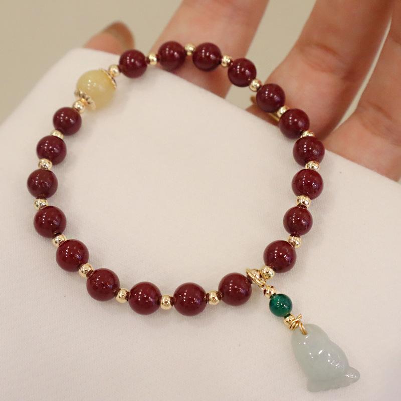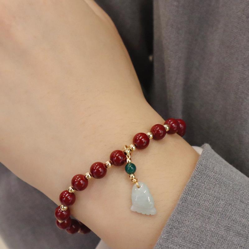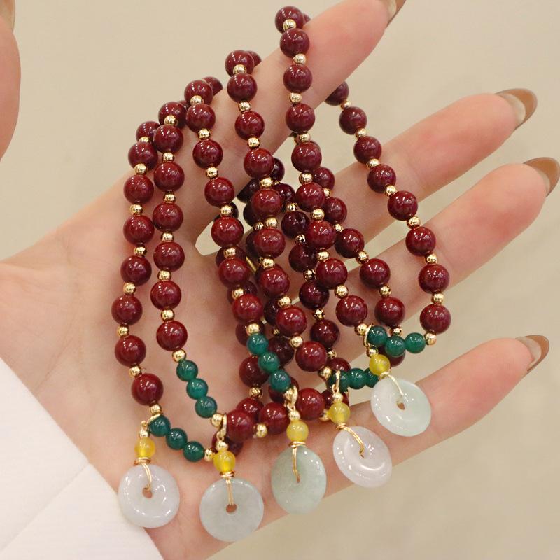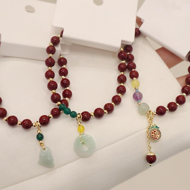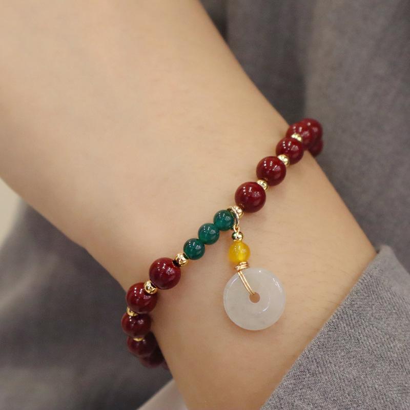 Compra Nueva pulsera de cinabrio con hebilla de jade Ping An, pulsera de marca con oración de transferencia, joyería de estilo chino vintage con explosiones. al por mayor en Joom.pro