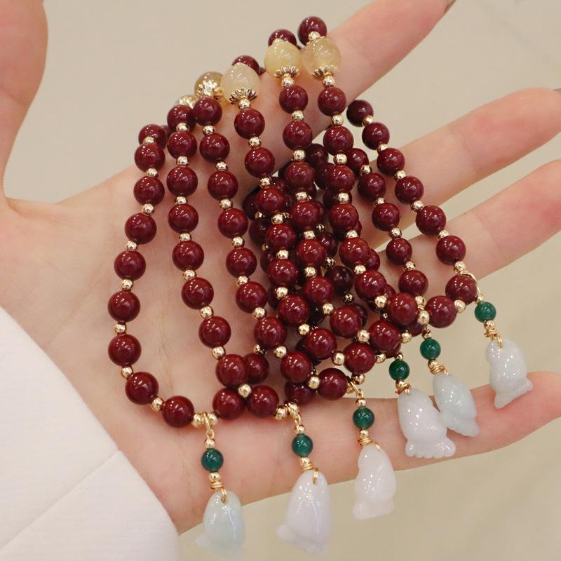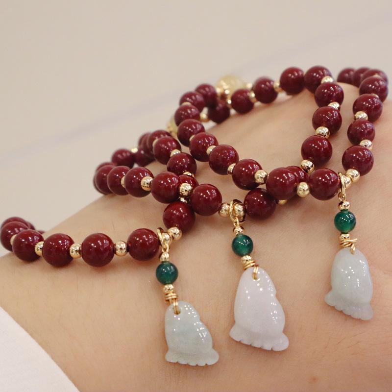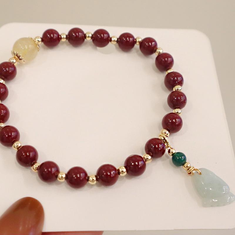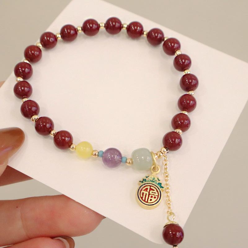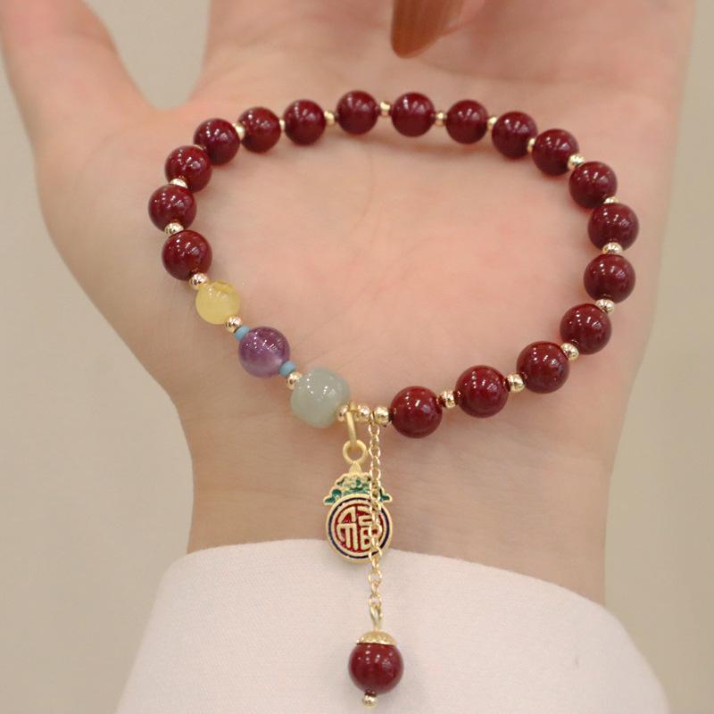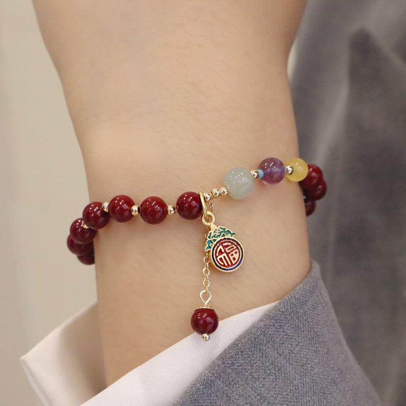 Compra Nueva pulsera de cinabrio con hebilla de jade Ping An, pulsera de marca con oración de transferencia, joyería de estilo chino vintage con explosiones. al por mayor en Joom.pro