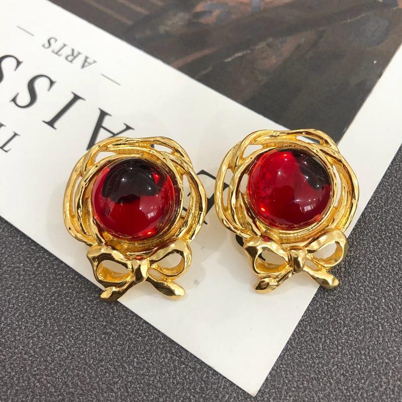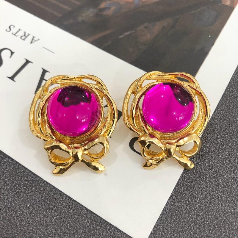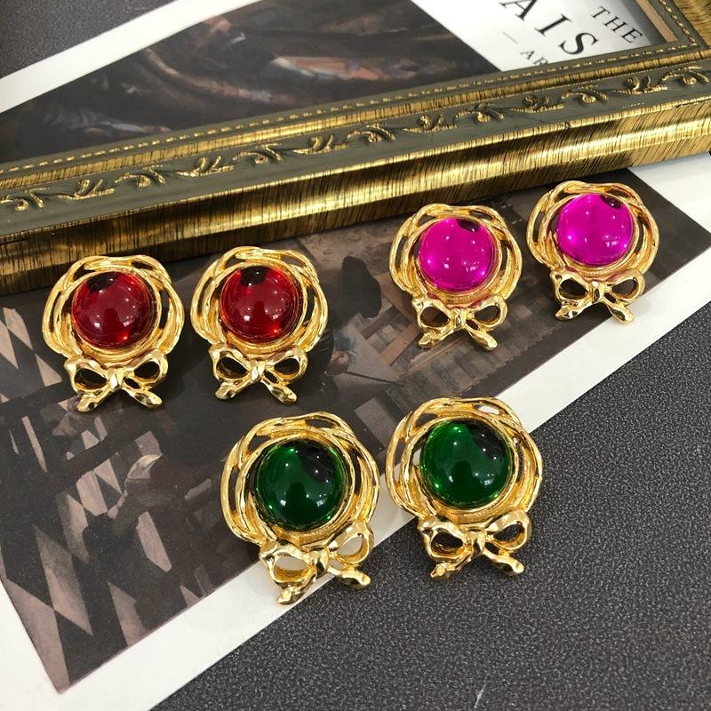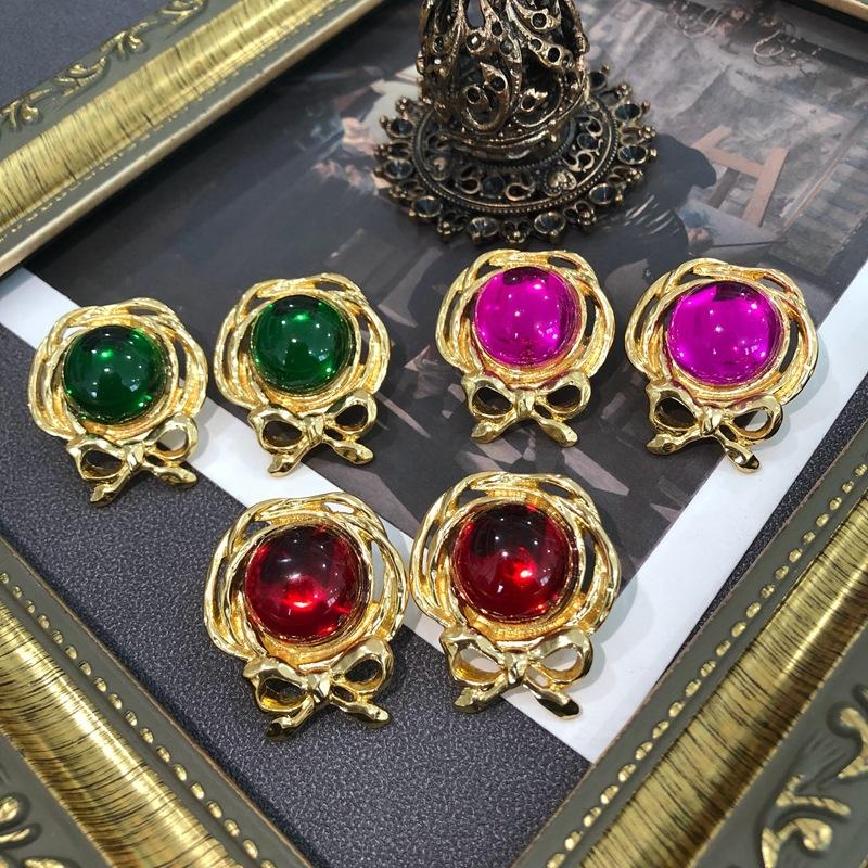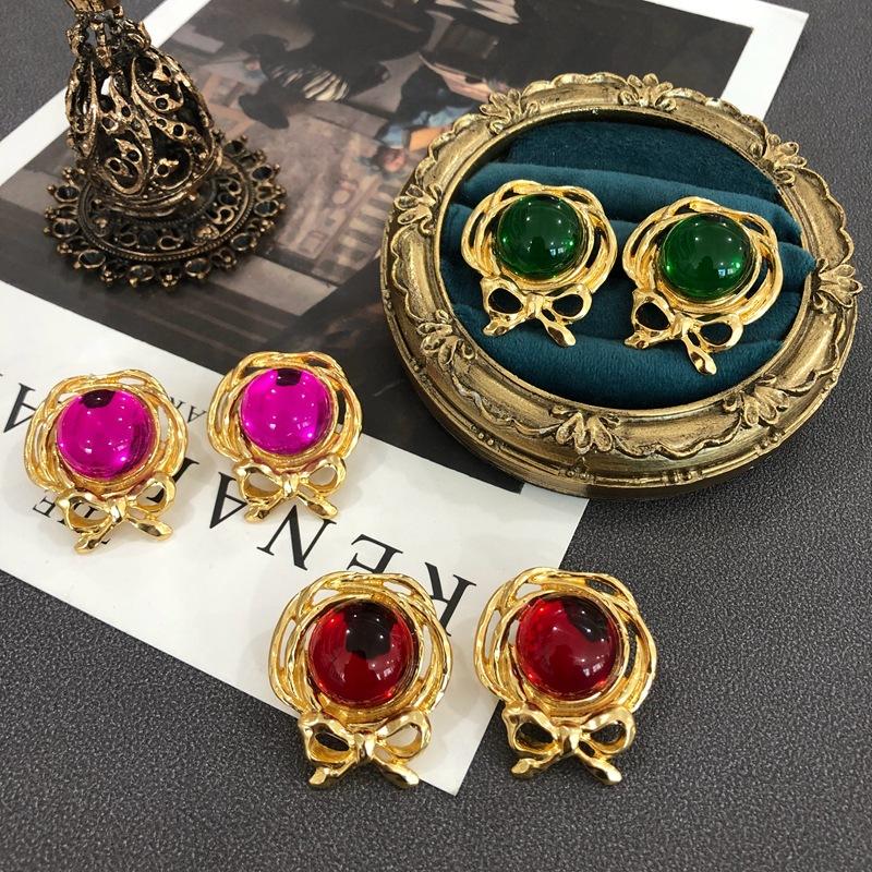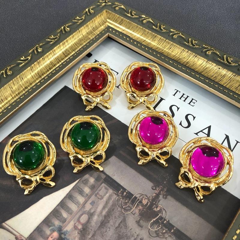 Compra Pendientes de palacio vintage chapados en oro auténtico con esmalte de color medieval, pendientes de aguja de plata, pendientes de clip para oreja, pendientes de lujo ligeros de nicho francés al por mayor en Joom.pro