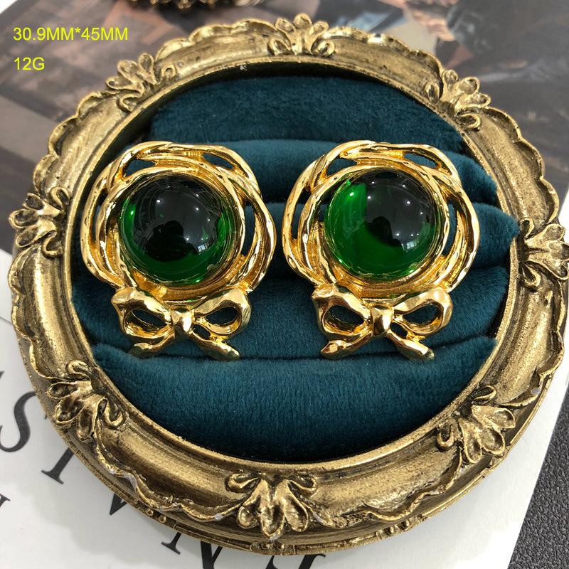 BM620 rose red silver stud earrings, BM726 rose red ear clip, BM621 green silver stud earrings, BM727 green ea...