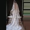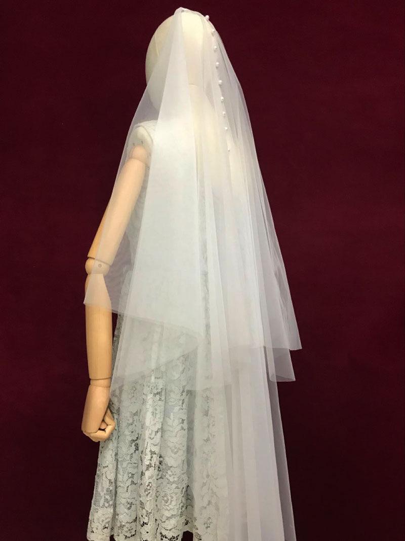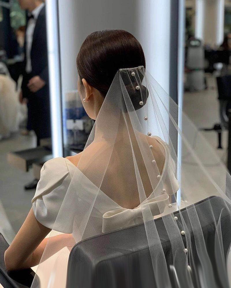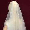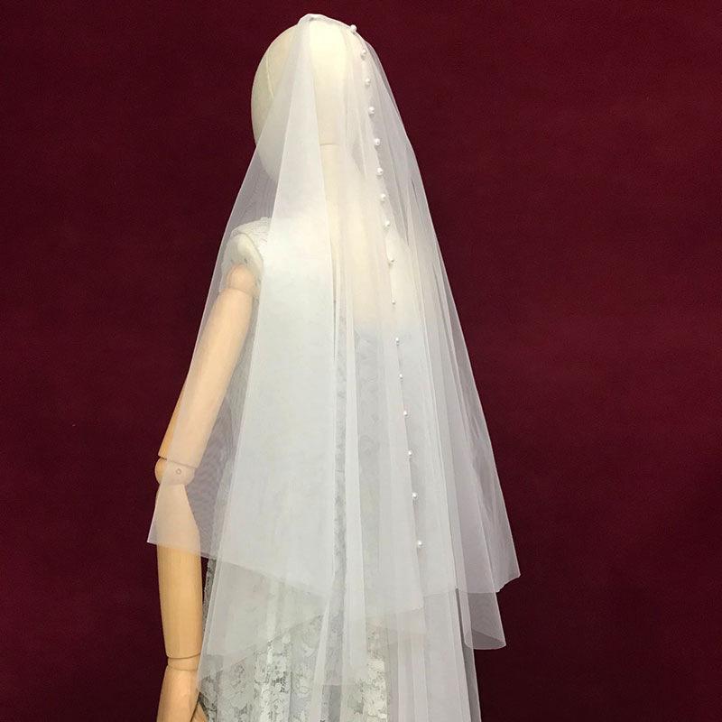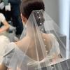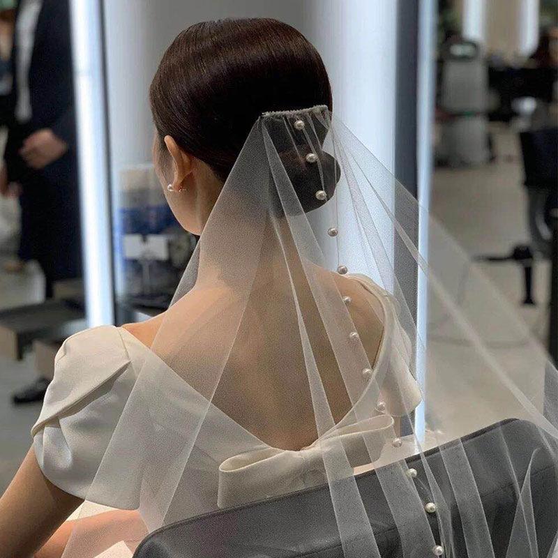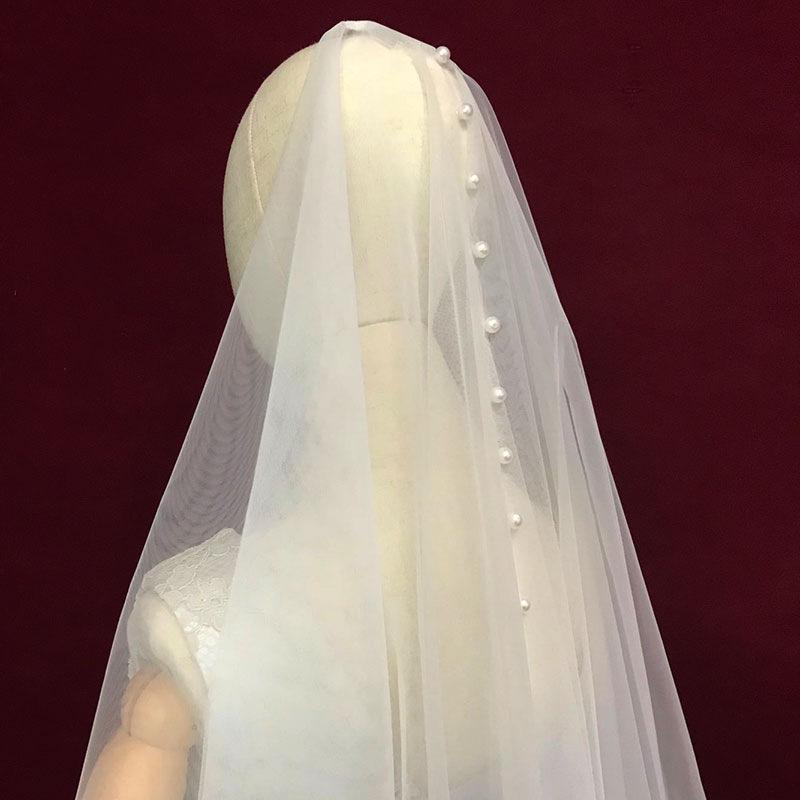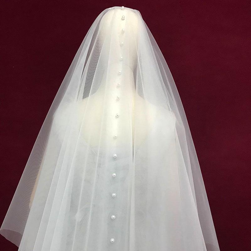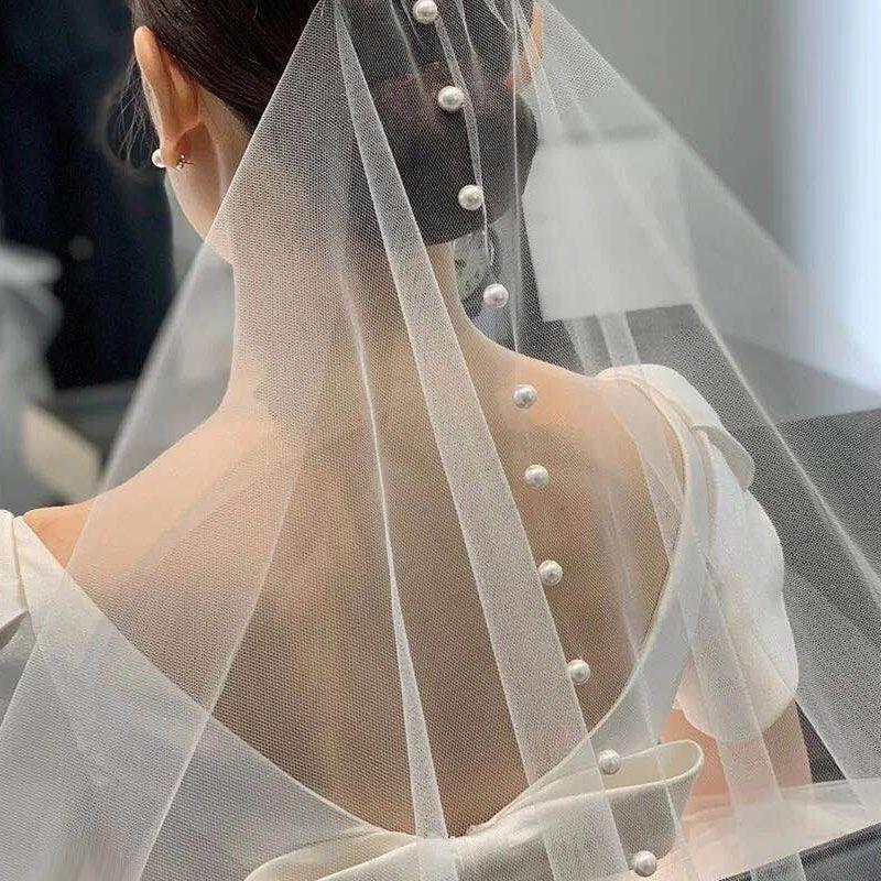 Velo Largo de Cola de Novia de Perlas de una Capa, Tocado para Vestido de Novia de Hilo Liso Largo y Corto, Fotografía de Viaje de Boda, Lazo de Estilo Vintage