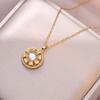 Collar de mujer estilo japonés-coreano con flor giratoria de circonitas y anillo de nicho, cadena de clavícula de acero y titanio.