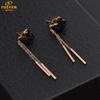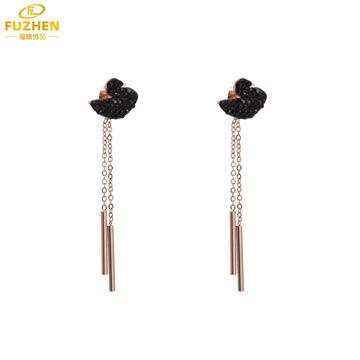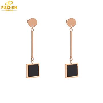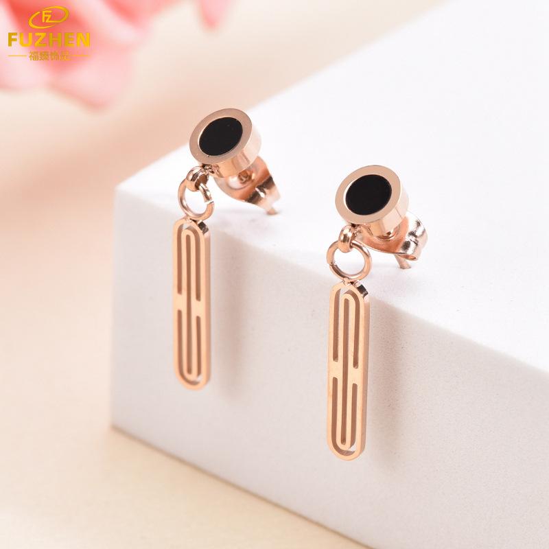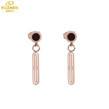Corea del Sur ins aretes largos colgantes de disco de oro rosa de 18K huecos de acero inoxidable aretes largos simples con borlas