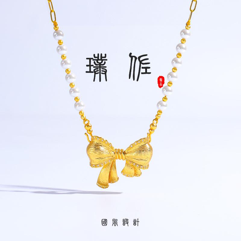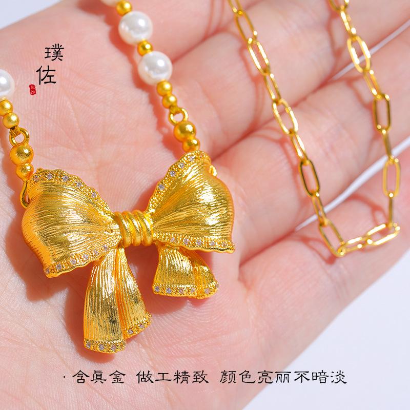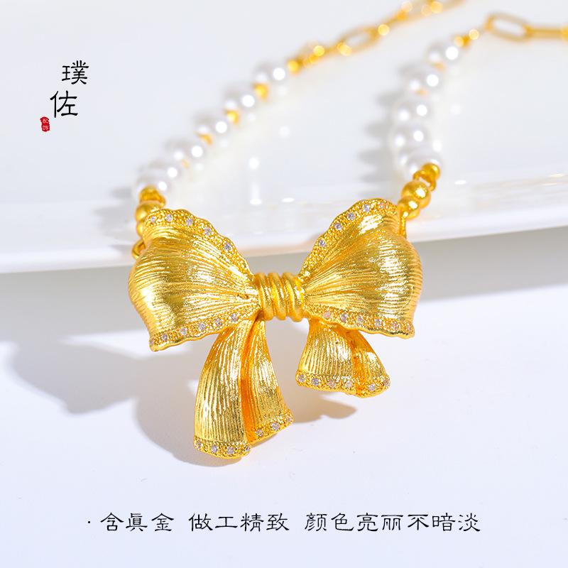 Jindian mismo estilo collar de perlas con lazo grande de hadas cuentas de concha galvanizadas que no se pelan cadena para clavícula estilo ins para niña