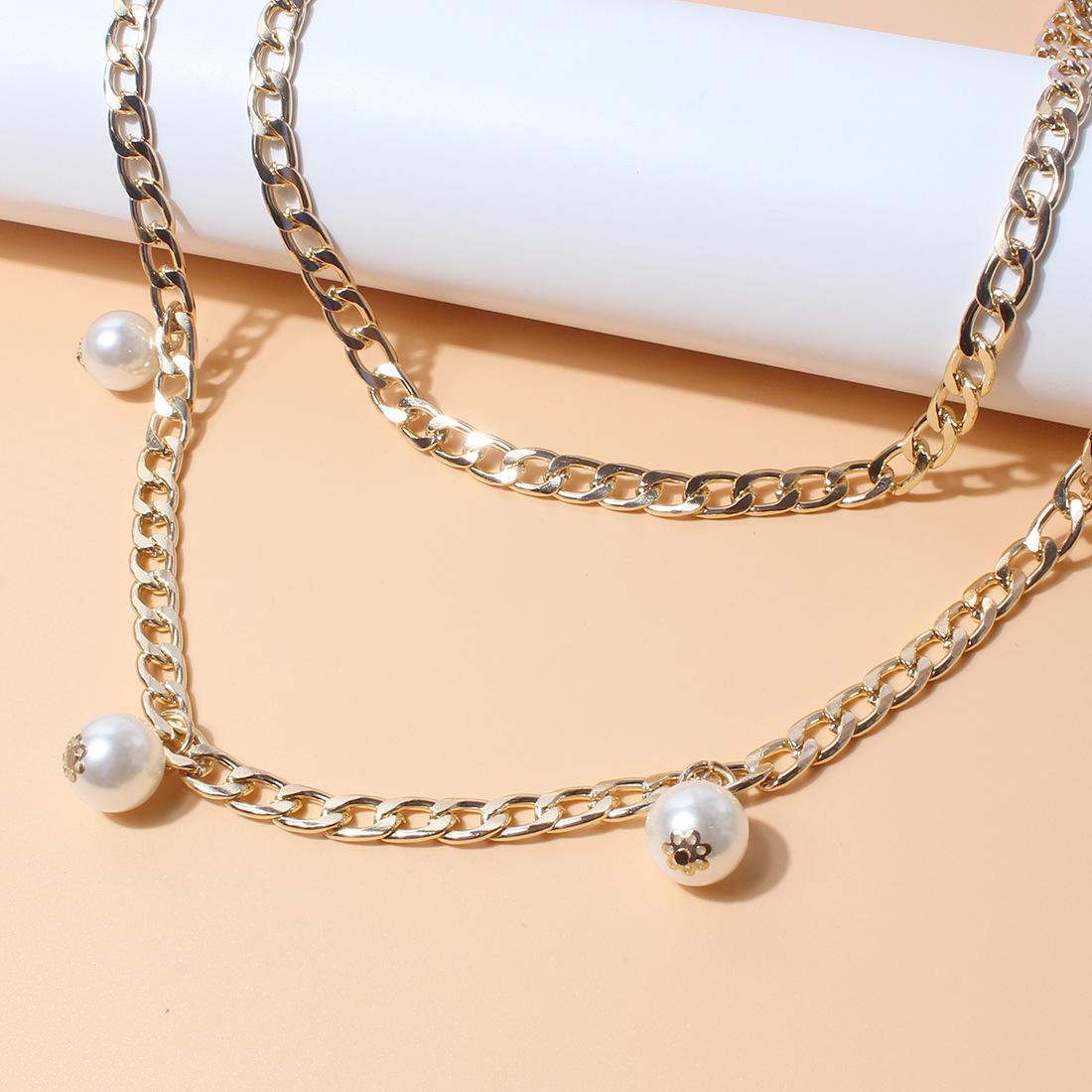Cadena geométrica sexy transfronteriza europea y americana, cadena corporal con borlas multicapa de perlas de imitación, joyería para mujer 19750
