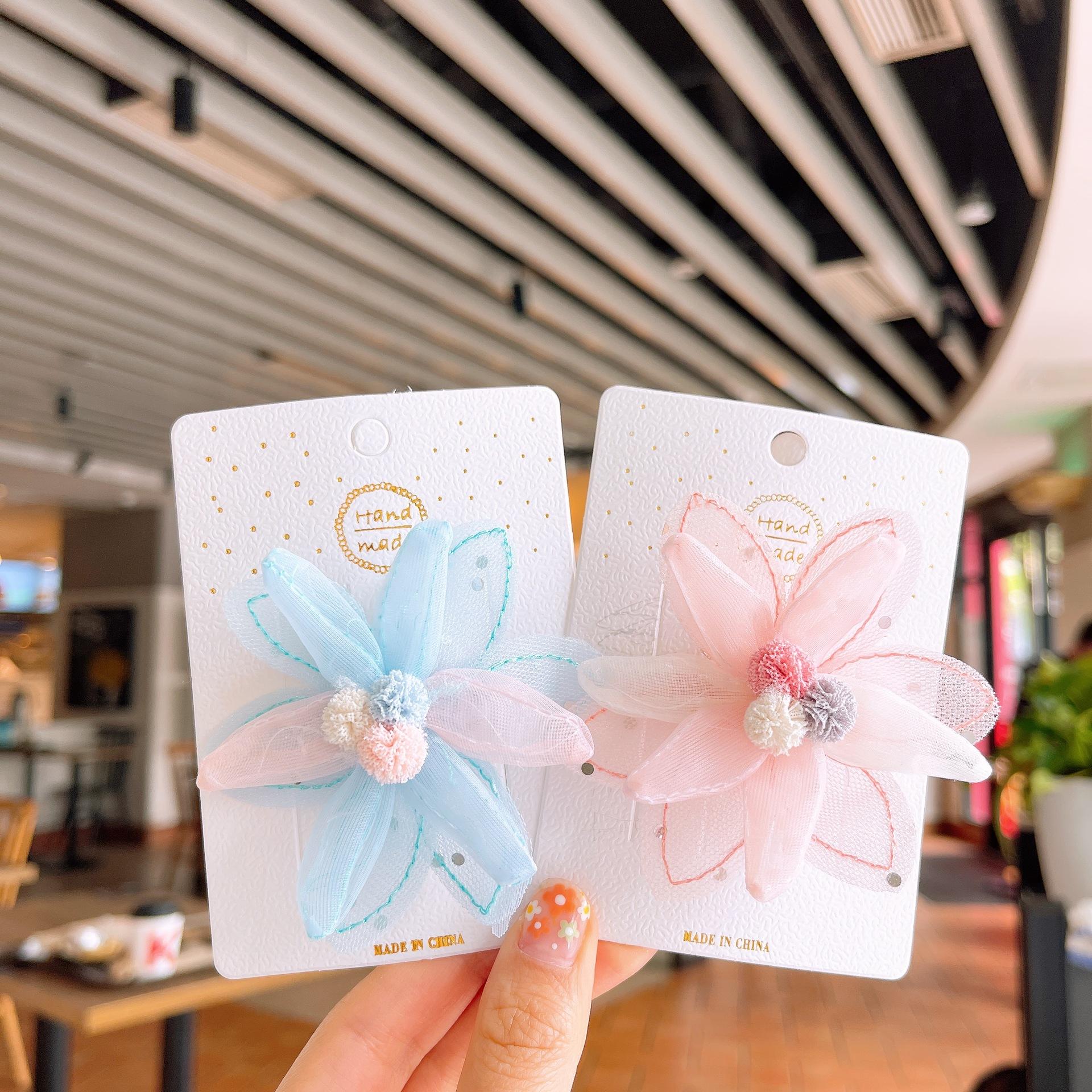 1# Pink Flower hairpin, 2# pink flower hair rope, 3# Blue Flower hairpin, 4# blue flower hair rope