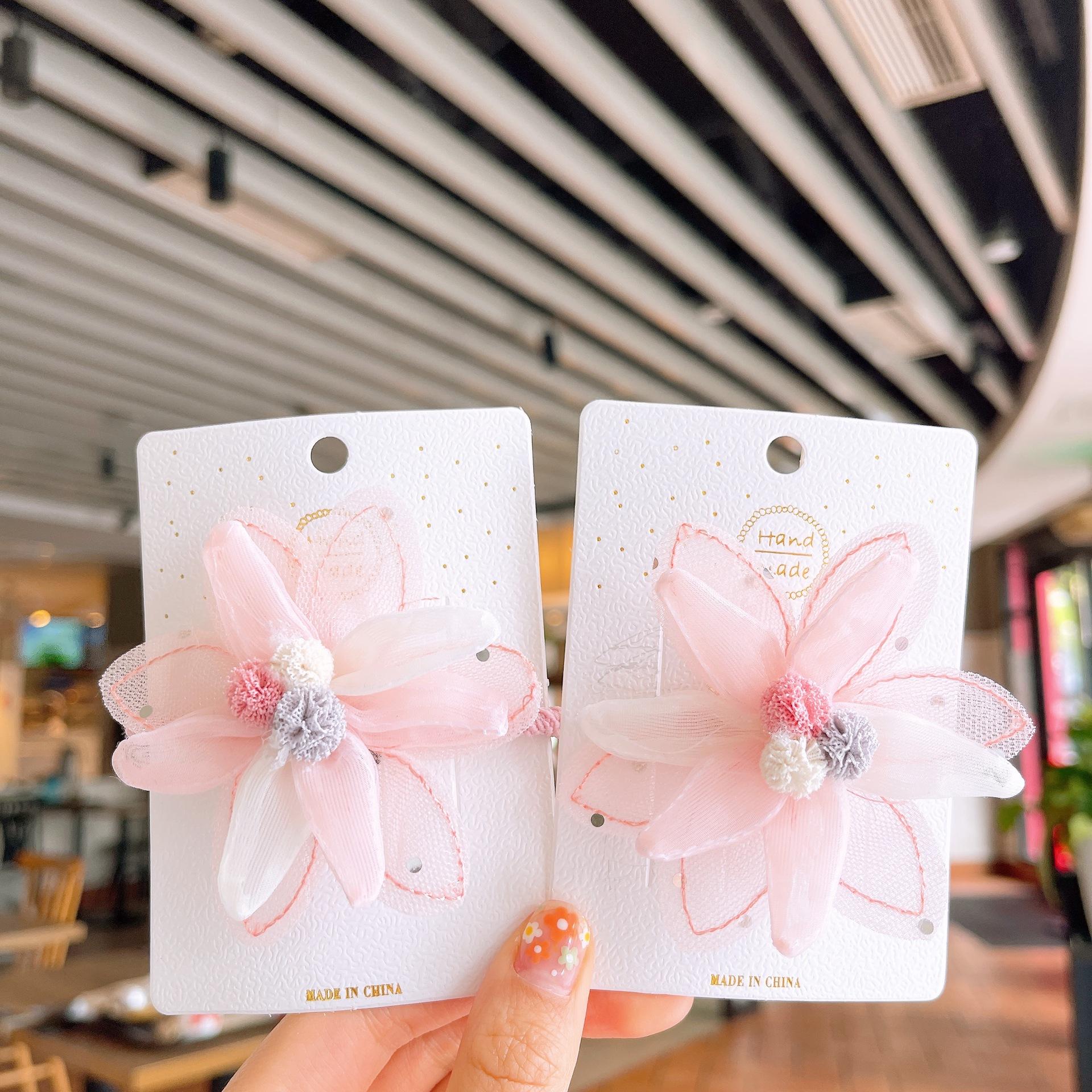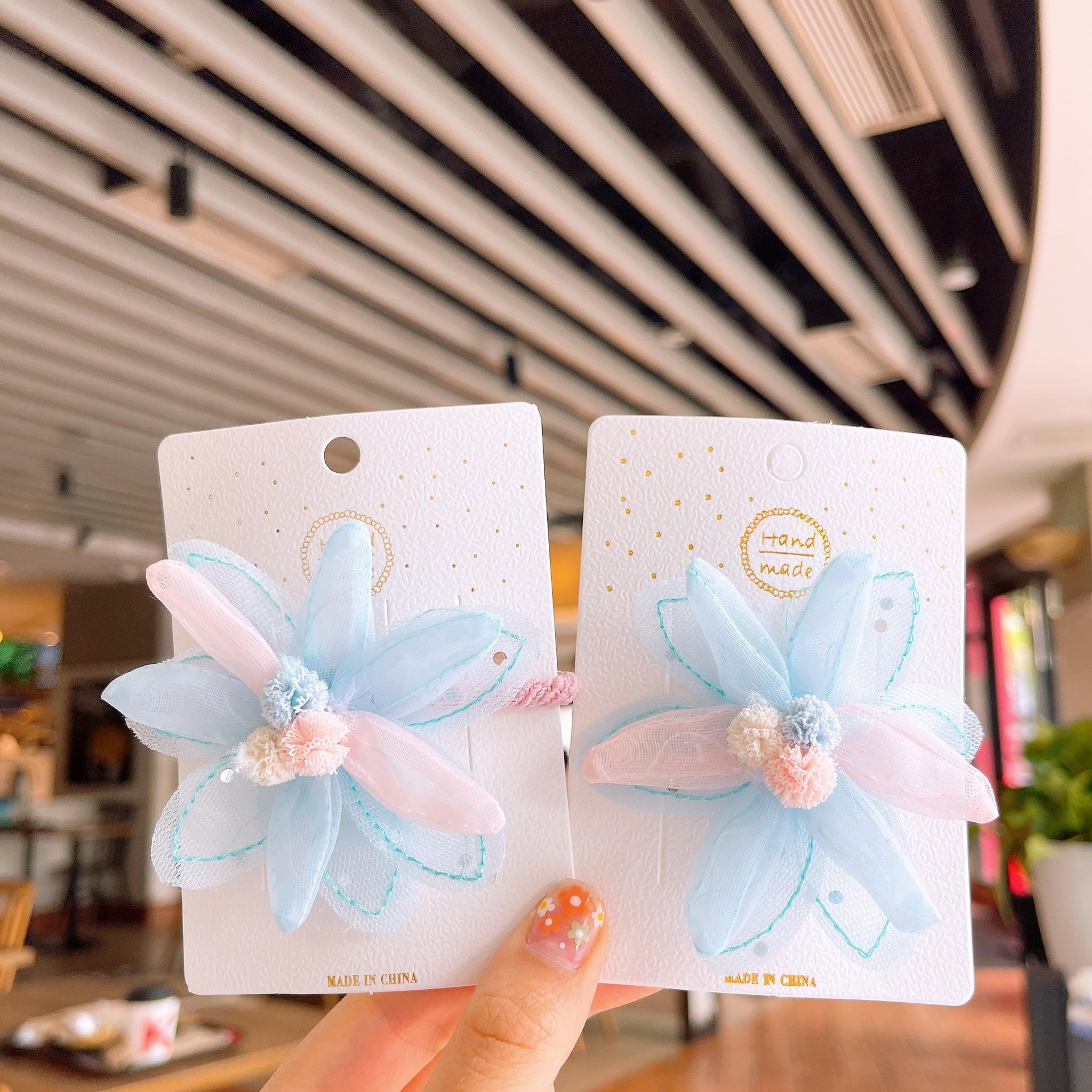 Bola de pelo tridimensional de malla con flores, accesorios para el cabello dulces, lazo para el cabello para niñas, linda cola de caballo, horquilla de estilo coreano de alta elasticidad, cuerda para el cabello