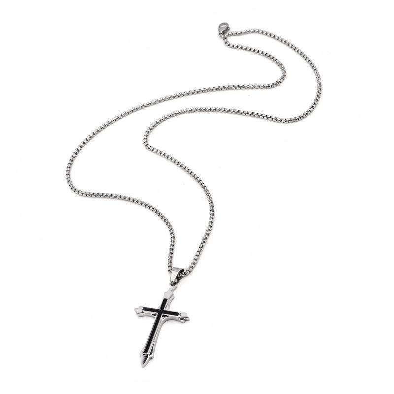 Colgante de doble cruz de acero inoxidable europeo y americano con personalidad, collar de gota de aceite para hombre a la moda, joyería sencilla de nicho al por mayor