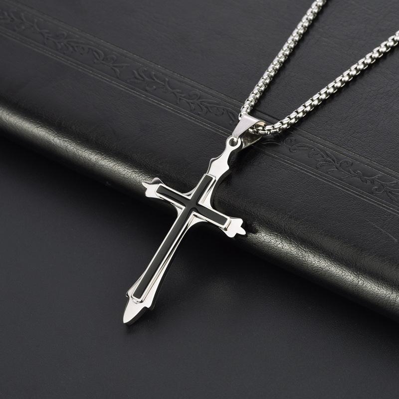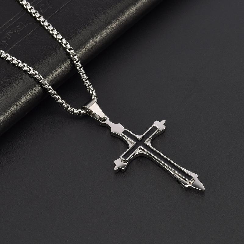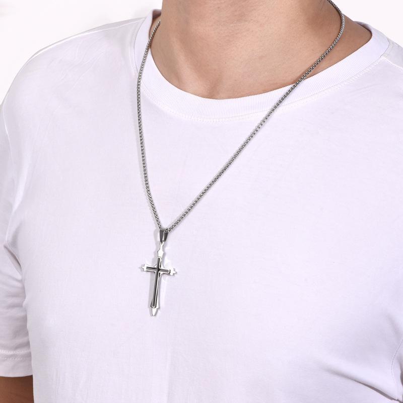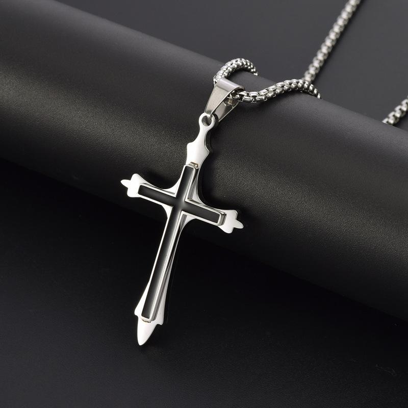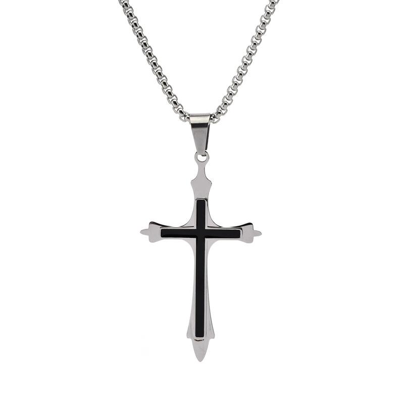 Colgante de cruz de acero inoxidable de doble capa, estilo europeo y americano, personalizado, moderno, con gotas de aceite, para hombre, joyería sencilla, venta al por mayor.
