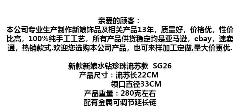 Youlapan Sg26 Nuevo Chal de Borlas de Verano, Cadena de Hombro con Cuentas a Mano, Accesorios Nupciales de Lujo con Diamantes Completos