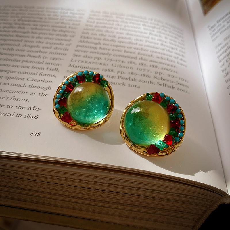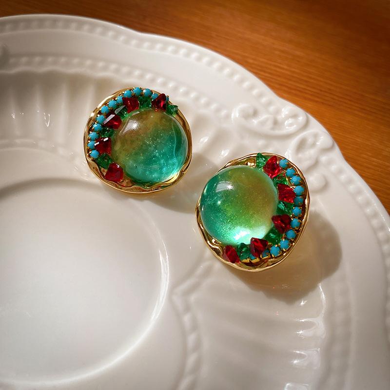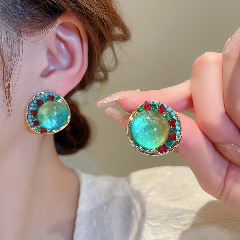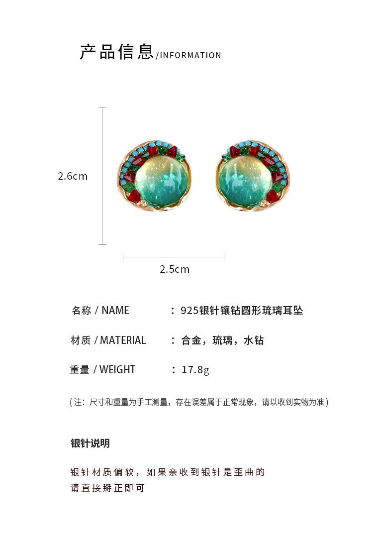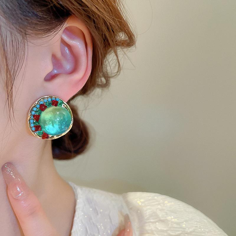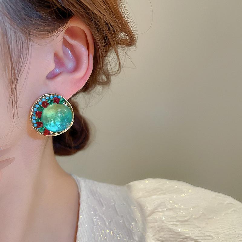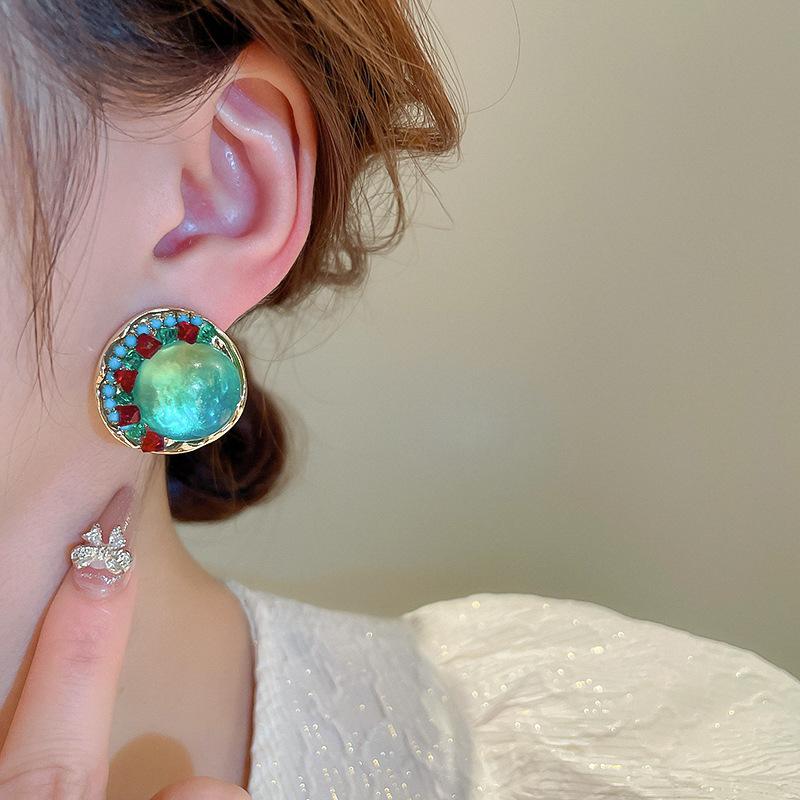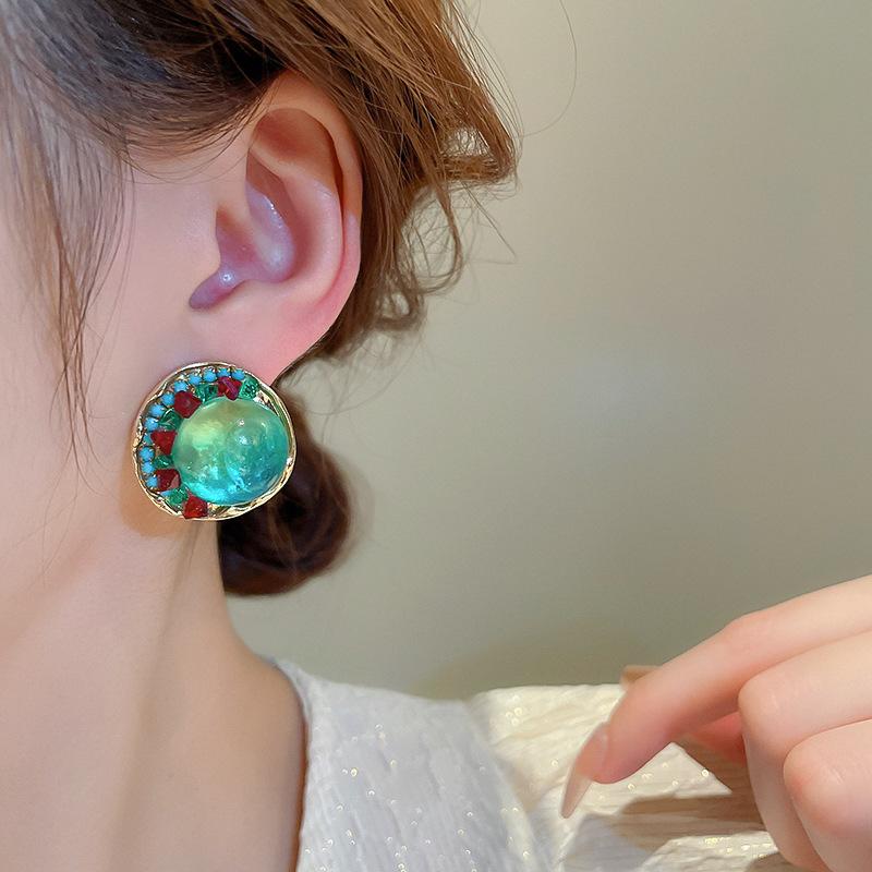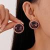 Pendientes de plata geométricos redondos con diamantes esmaltados vintage, estilo corte francés, elegantes pendientes de alta gama para mujer.