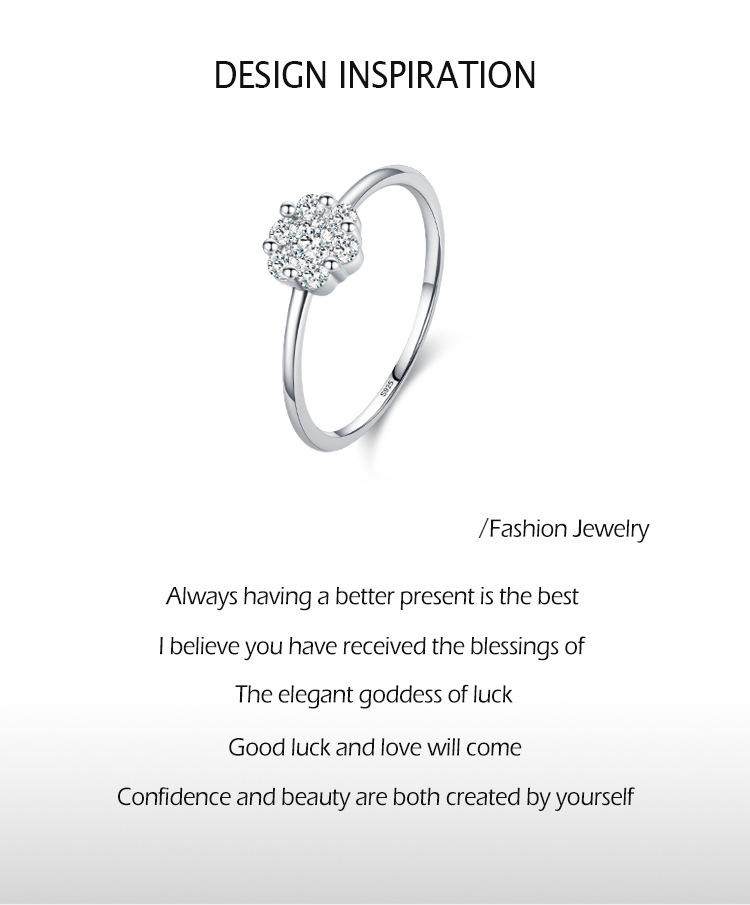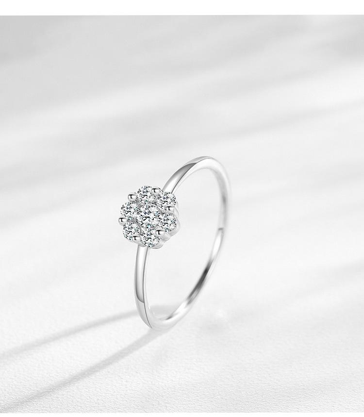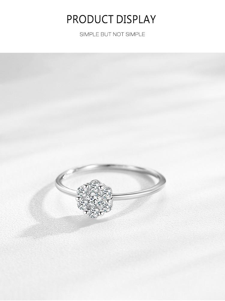 Anillo de plata de ley S925 con diseño de flor de diamante, estilo femenino, estilo frío, dulce y fresco, regalo fino para novia.