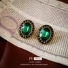 Coreano Nueva Llegada Lujo Ligero Cristal Verde Hebilla de Oreja Simple Todo Combinable Moda Hecho a Mano vintage vintage Antiguo Aretes