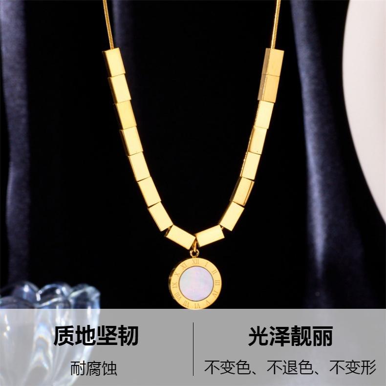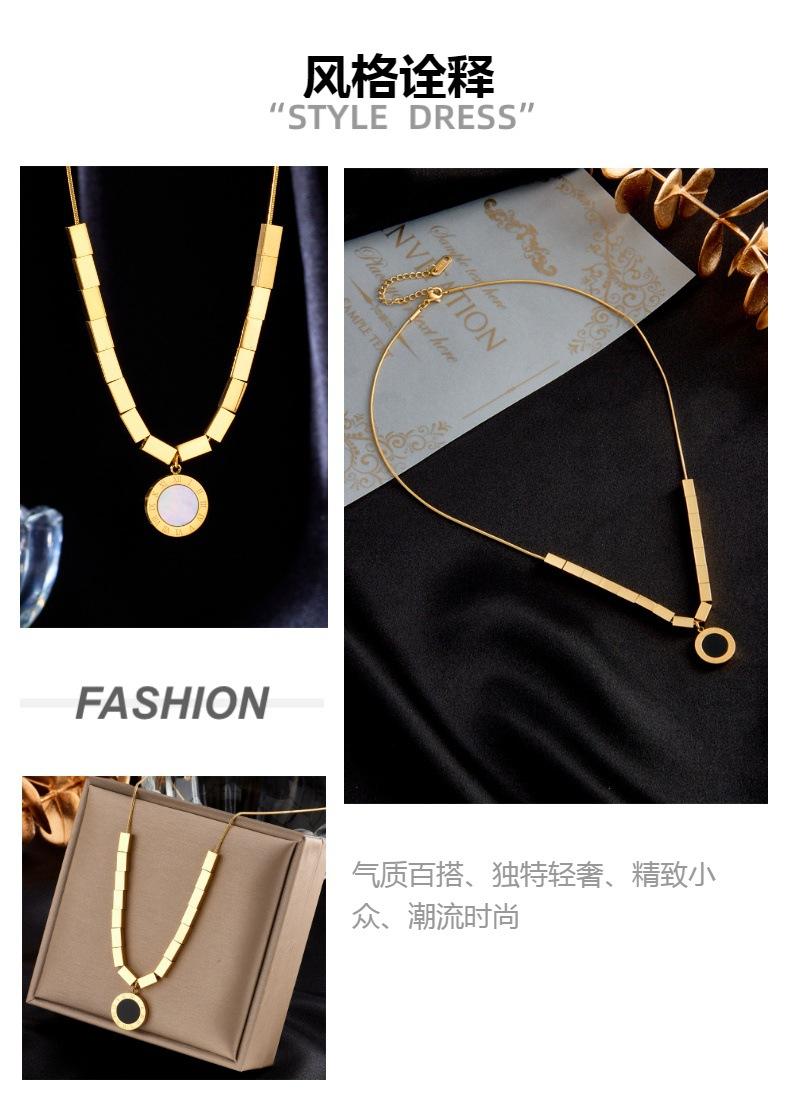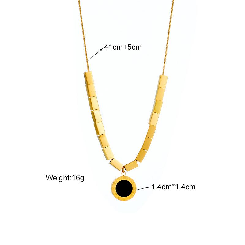 Moda Transfronteriza Europea y Americana Retro Tridimensional Cuadrado Accesorios Cadena Romano Colgante de Placa Redonda Acero Inoxidable Joyería Collar