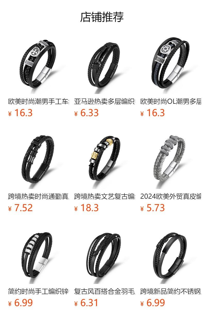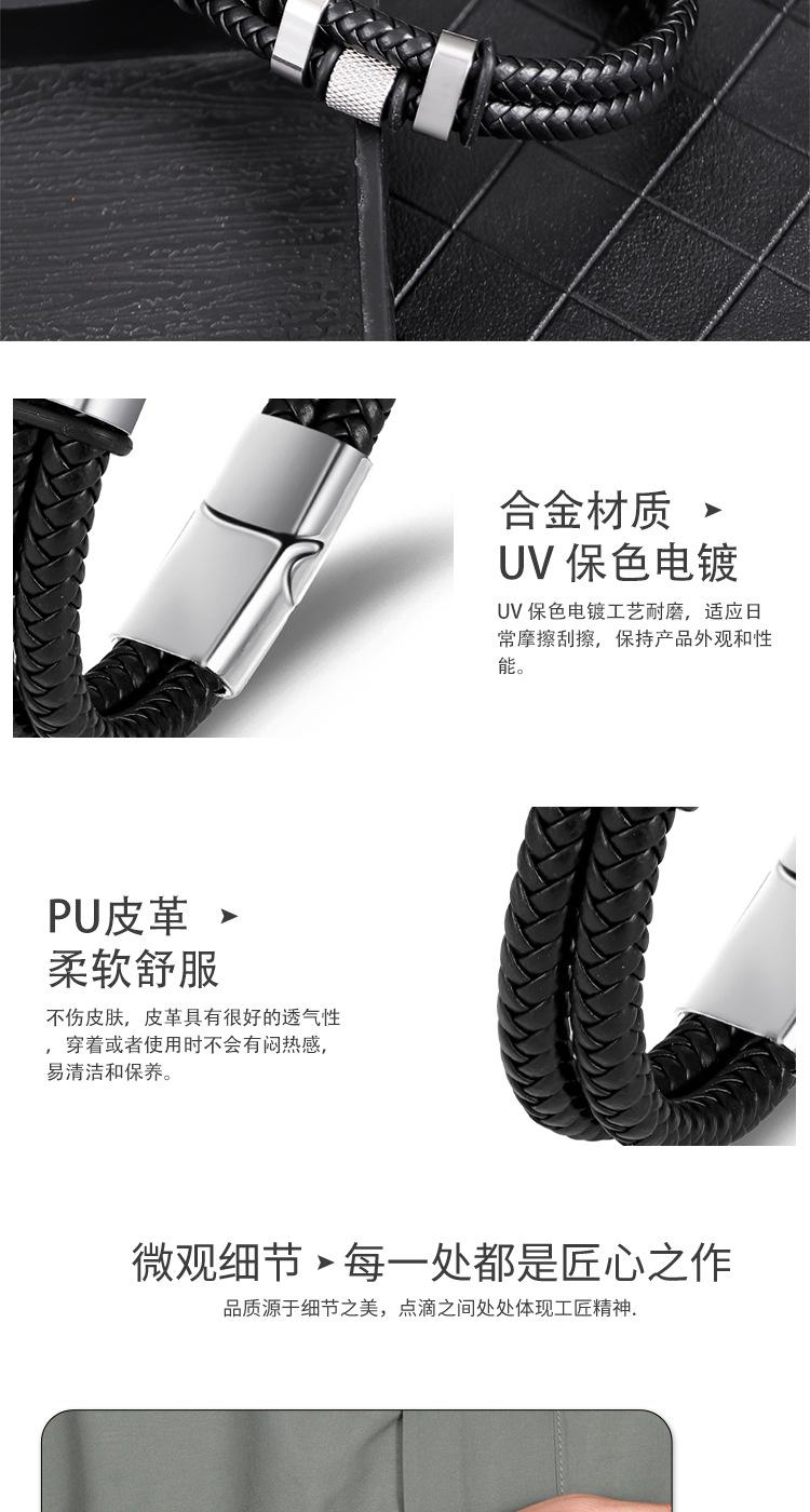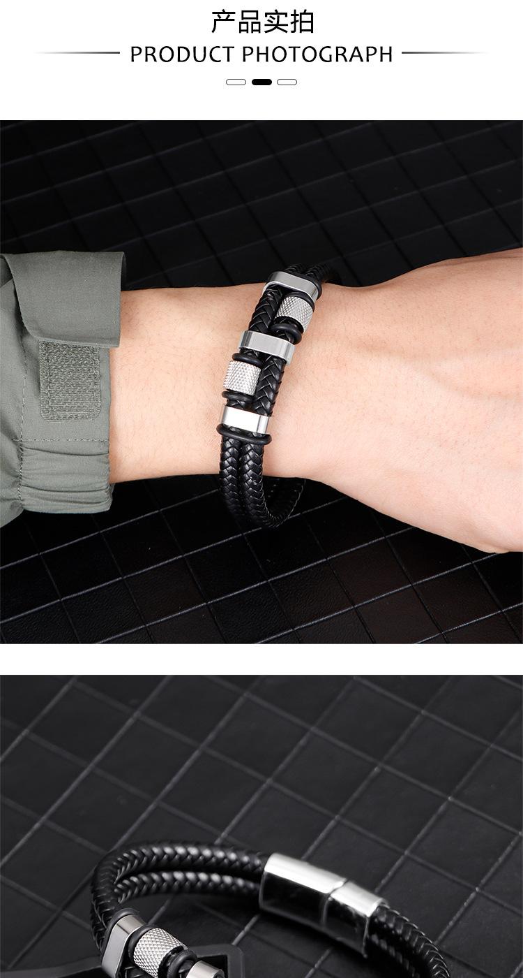 Pulsera de cuero de moda transfronteriza europea y americana con hebilla magnética de aleación para hombre, pulsera tejida a mano multicapa, joyería versátil