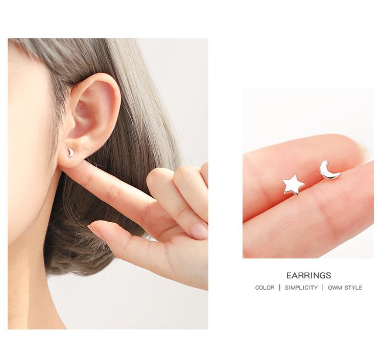 Star Moon ear studs (asymmetric), Star stud earrings (symmetrical), Moon stud earrings (symmetrical)