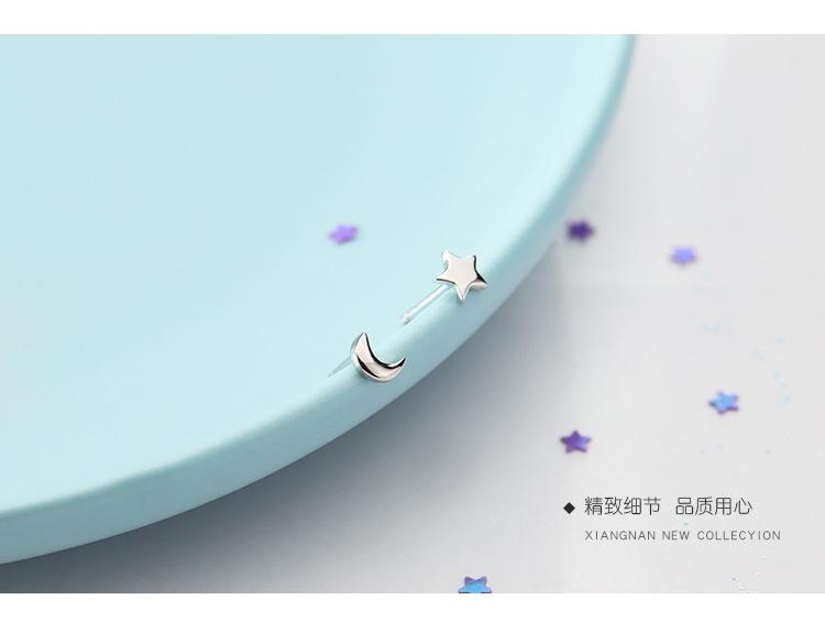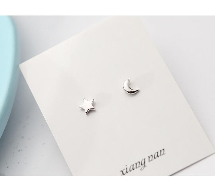 Pendientes cuadrados de plata de ley S925, sencillos, a la moda, bonitos, pequeños pendientes asimétricos de luna y estrella, joyería para las orejas de mujer