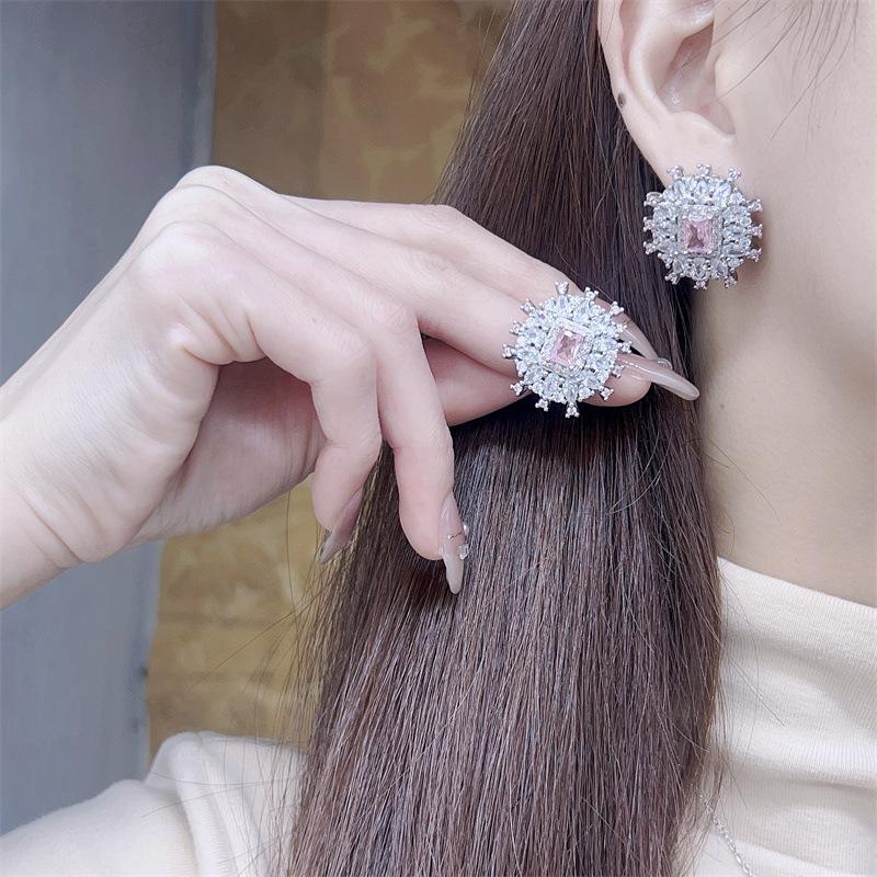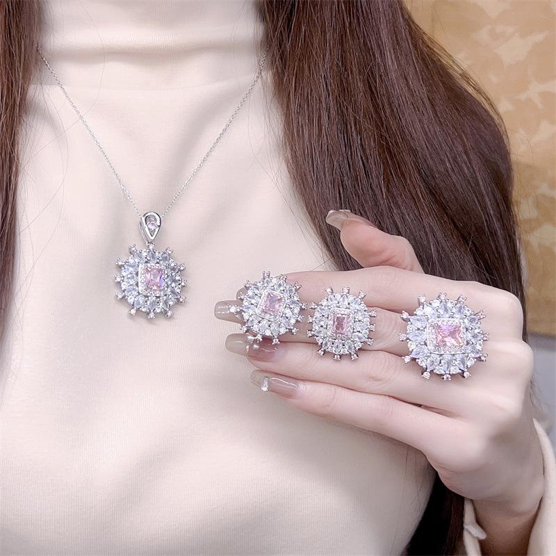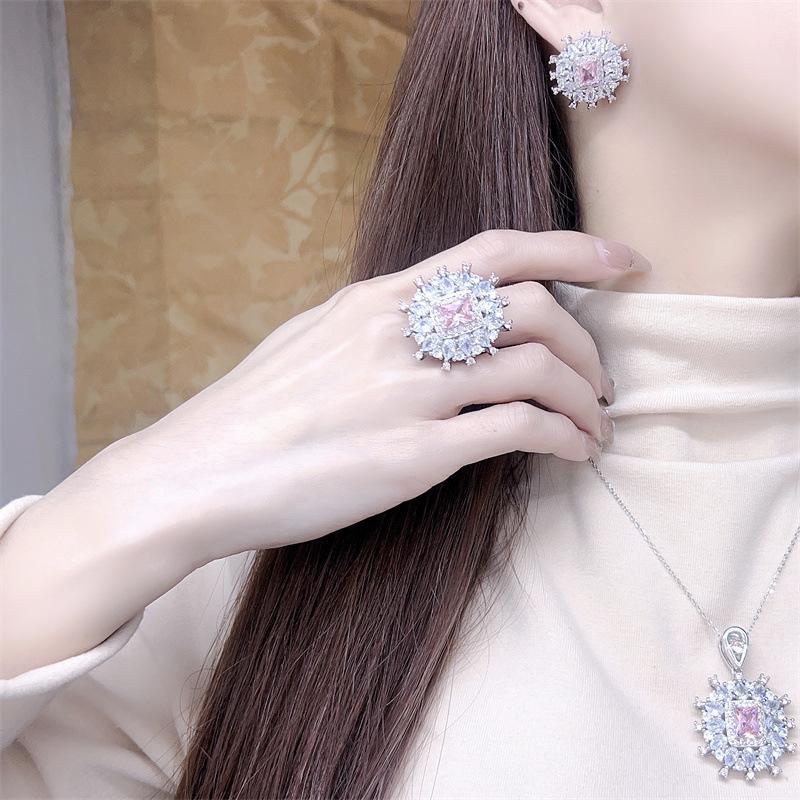 Caibao Conjunto Elegante de Circonita Brillante de Alta Gama para Mujer Moda Personalidad Collar Anillo TikTok Libro Rojo